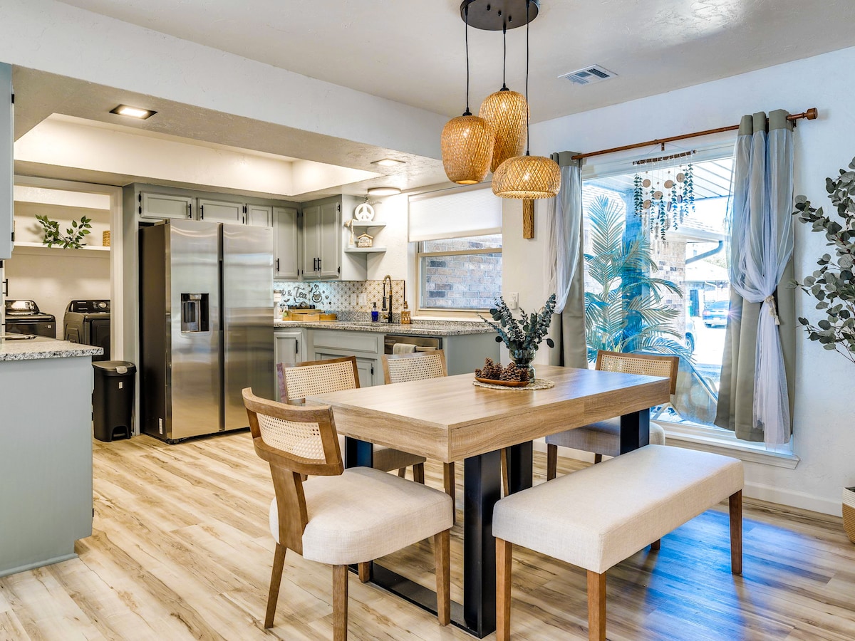 Welcome to The Raven! This single family home is close to downtown Edmond. It is located close to fun restaurants, shopping and grocery stores. This is a 2 bedroom, 1 bath home with updated furnishings and a comfortable atmosphere. It has 1 king bed and 2 twin beds. This is a non smoking home. There is a park that backs up to the home with a playground and tennis court, as well as a walking trail. The Raven sits in a quiet neighborhood, perfect for relaxing during your stay!