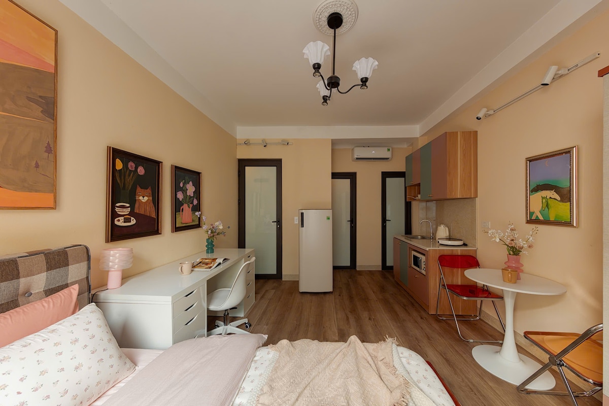 ♥️Nincsenek szolgáltatási díjak♥️ Kivételes szállás Ha Noiban, ahol a kortárs kényelem zökkenőmentesen keveredik a hagyományos vonzerővel. A Koreatown és a The New Administrative Center közelében található bájos, 01 hálószobás stúdiónk a világ minden tájáról hívogatja a vendégeket, és szívélyes fogadtatásban részesíti a dédelgetett barátokra emlékeztető vendégeket. Merülj el a jellegzetes indochini légkörben, amely stílusos szálláshelyünk minden szegletét áthatja. Változtasd a nyaralásodat felejthetetlen élménnyé!