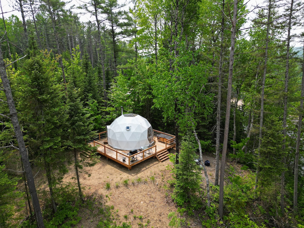 *Expérience sans eau ni électricité* Voici un hébergement de glamping unique située à St-Mathieu-du-Parc. Ce dôme confortable dispose d'un lit queen-size (literie incluse) qui fait face à une grande ''bay window'' avec une vue imprenable sur la belle nature qui l'entoure. Un foyer au bois pour vous réchauffer sera là pour vous accueillir après une journée complète passée à profiter du plein air. Cet espace est unique - et hors réseau/off grid.