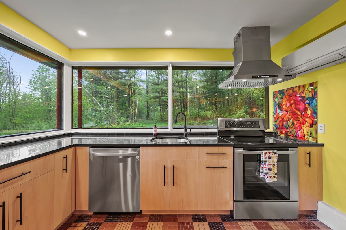 This architectural gem with wrap-around glass windows welcomes guests with its uniquely-designed, informal interior set on 7 private woodland acres. Cozy up around the wood-burning fireplace with floor to ceiling windows as a backdrop, or sit on the expansive deck around the firepit gazing at the stars. Use as a home base for the wonderful cultural and outdoor activities in the area, or enjoy nature in luxury without ever leaving home. *Book midweek for discounted rates IG@midcenturyoctagon