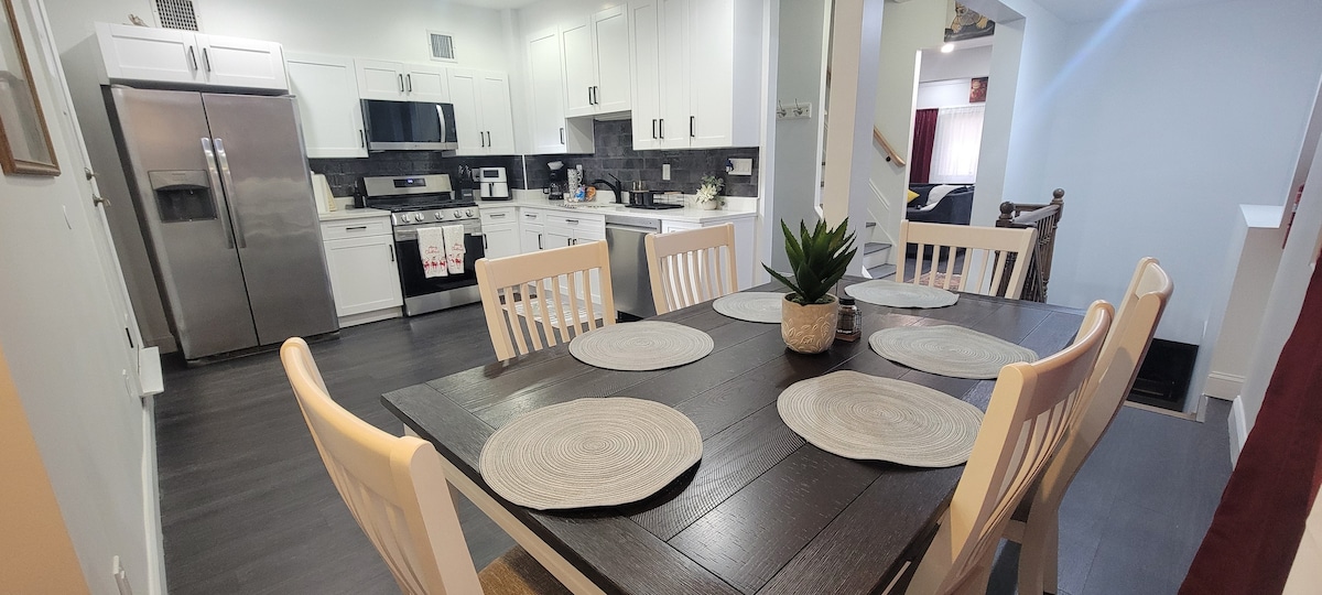 Escape to this stylish, newly renovated home in Laurelton, Queens, just 12 mins from JFK! Perfect for families & groups, this retreat features a chef's kitchen, a private backyard with a fire pit & BBQ, and comfortably sleeps your group. Enjoy a modern, open-plan living space and easy access to local dining. Your ideal base for an authentic NYC adventure!