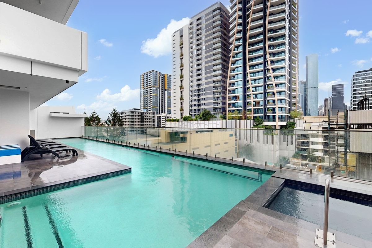 Élvezd a stílusos élményt, ahonnan csodálatos kilátás nyílik az erkélyről és a tetőtéri medencéből. Pihenj az erkélyen, miközben a Brisbane Cbd helyszíneit és hangjait használod, vagy menj fel a tetőtéri medencébe, és pihenj a napsütésben vagy Brisbane fényei alatt. Teljesen felszerelt lakás teljesen működőképes konyhával, fürdőszobával, nappalival és irodaterülettel, Wi-Fi-vel és ingyenes helyszíni parkolással. Southbank kávézók, éttermek, parkok, kongresszusi központ, művészeti negyed, Brisbane Cbd és West End közelében.