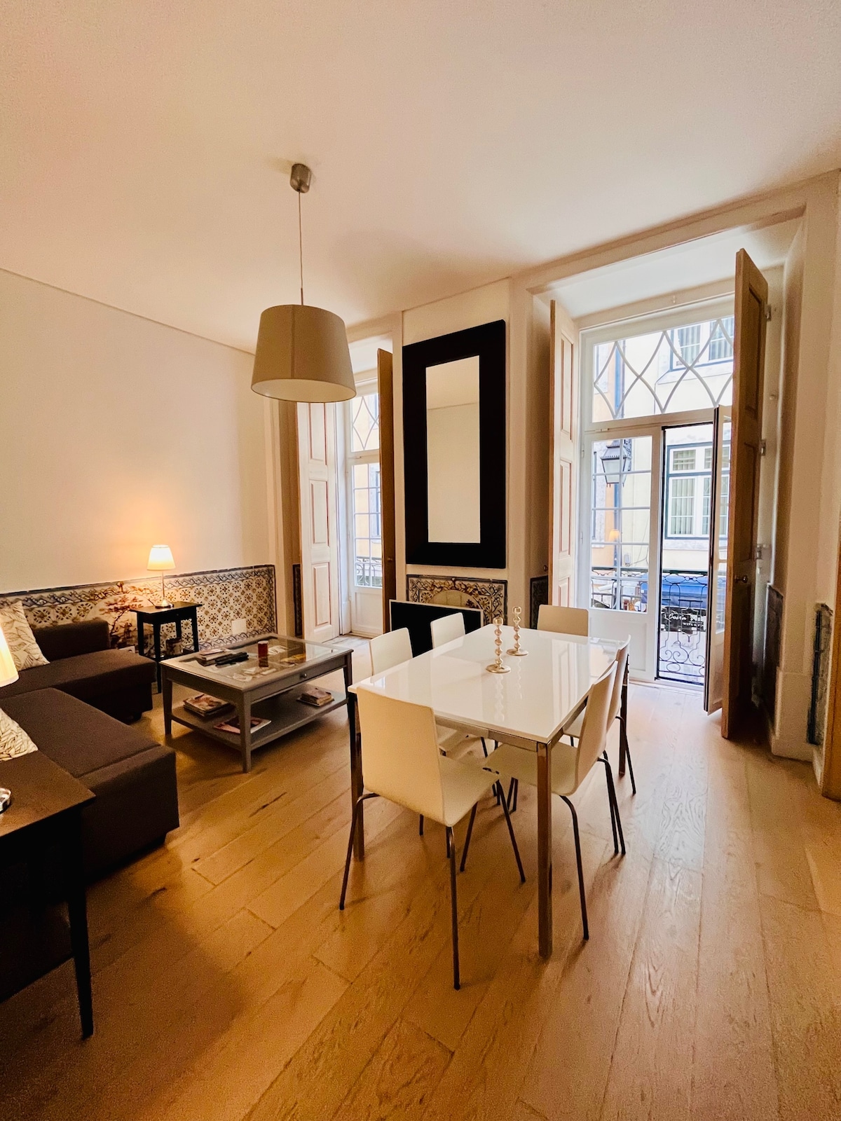 Baixa szívében, Chiadóra rögzített, fényárban úszó, tágas nappali csábít el a Tagus vagy a Szent Jorge kastély mentén tett hosszú séták után, amelyeket az erkélyedről láthatsz. A 2. emeleten lift nélkül, forgalmas és nyüzsgő utcában. A belépés egy kis bolton keresztül történik, amely a földszinten található. Városi zaj várható. Tágas 2 ágyas és 2 fürdőszoba, az egyik saját fürdőszobával, teljesen felszerelt konyha, légkondicionáló és minden, ami egy kiváló tartózkodáshoz szükséges.