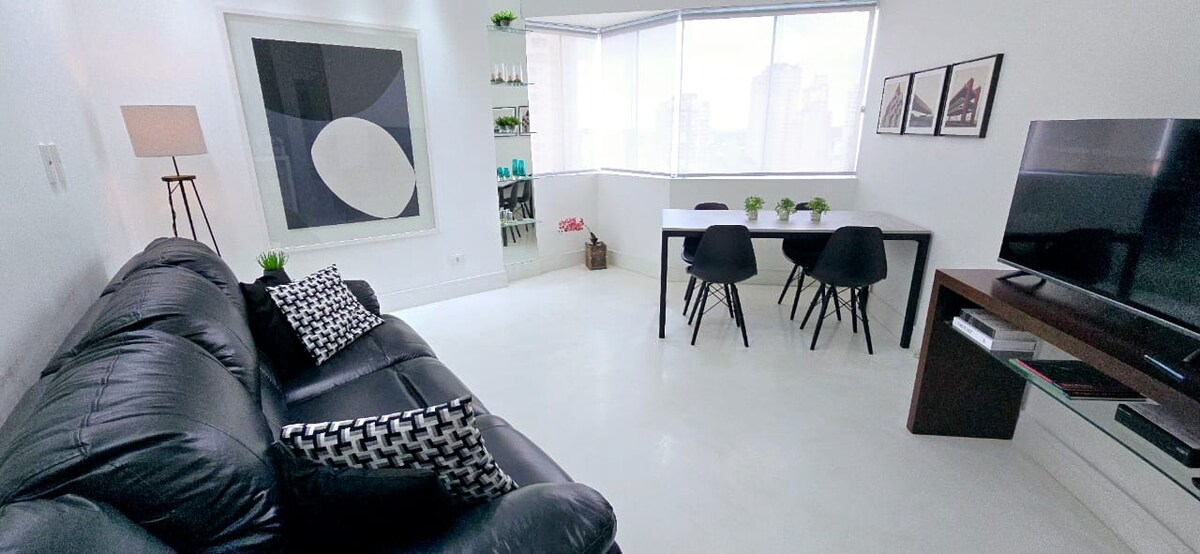 Stílusos 50 m²-es lakás a Bela Vista területén, 24 órás portás. 2 hálószoba (csak az egyikben van légkondicionáló és franciaágy, a második elég kicsi, és irodaként is használható, kétszemélyes kanapéágy fér el benne) és 1 fürdőszoba. Minden ablakból csodálatos kilátással nagyszerű hely a munkához és a kikapcsolódáshoz. Az erkélyen található privát pezsgőfürdő fantasztikus hely a városra nyíló kilátás élvezetére. Ideális pároknak, szakembereknek vagy kis családoknak, akik kényelmet, kényelmet és a város egyik legjobb kilátását keresik.