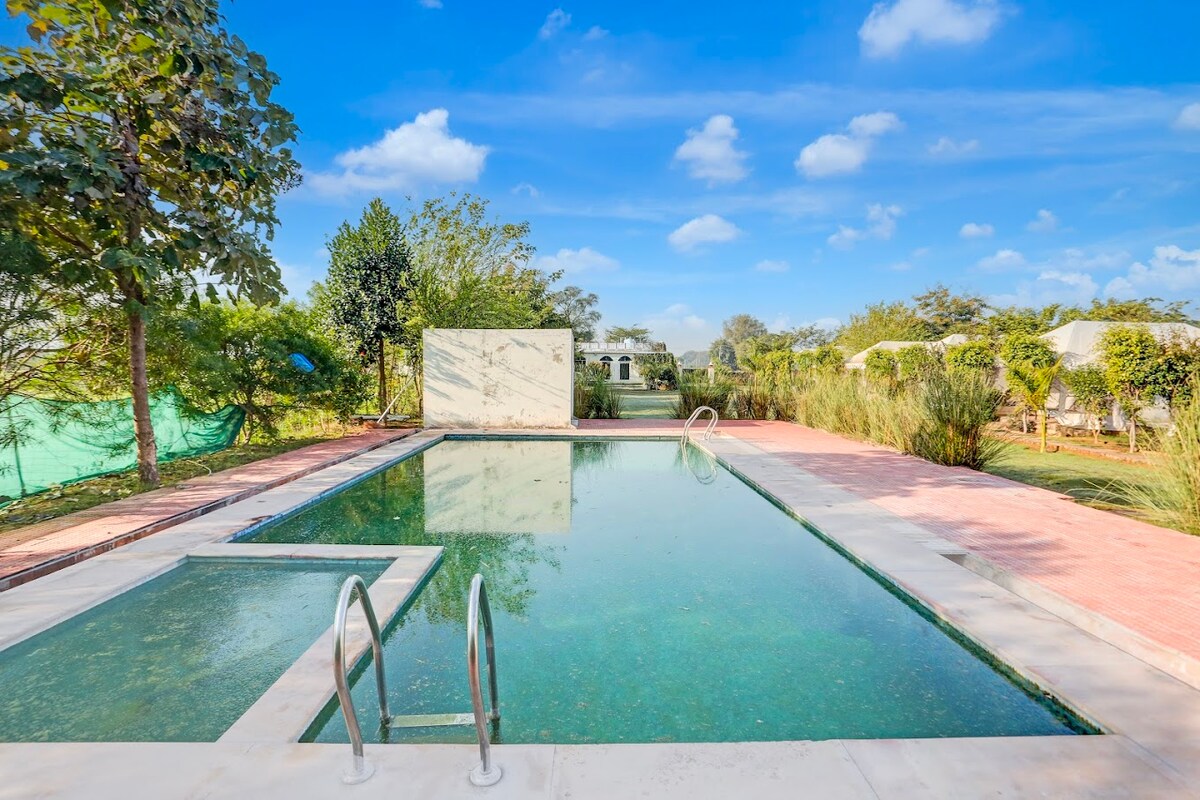 Escape to Satva Agro Resort, where luxury meets nature's roots. Nestled midway between Vrindavan (45 mins) and Taj Mahal, Agra (45 mins), our 7 Swiss luxury tents overlook serene gardens and a sparkling pool. Indulge in premium amenities: gym, sauna, steam room, and Swimming pool. Embrace our motto...reconnect with your roots through hands-on vegetable farming and dairy experiences. Perfect for soulful retreats amid Mathura's spiritual heartland. Book your authentic agro-luxury haven today!