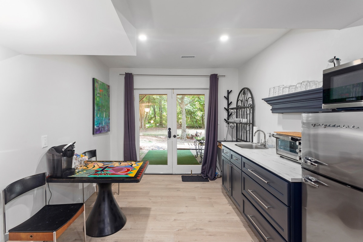 → Hangulatos, privát, egy hálószobás lakosztály → Tágas nappali teakonyhával (nincs tűzhely/sütő vagy mosogató) → Elkerítve a hátsó udvarban → Privát, kulcs nélküli bejárat kültéri ülőhellyel → 1 Gbit internet/wifi → Íróasztal áll rendelkezésre a munkához → Felfújható matrac áll rendelkezésre →Kérésre babaútka is rendelkezésre áll → 10 percre Raleigh belvárosától → 6 perc az NC State University-ig → 5 perc az NC State Farmer 's Marketig → 20 percre az RDU repülőtértől és a Research Triangle Parktól