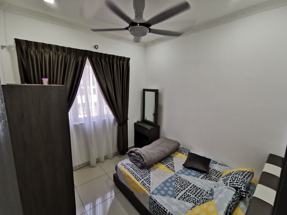 Fedezd fel hangulatos stúdiónkat, amely 2-3 fő elszállásolására alkalmas egy queen méretű ággyal és egy kanapéággyal. A KLIA T1/T2-től mindössze 15 perces autóútra található helyet számos étterem, gyorsétterem, élelmiszerbolt és mosoda veszi körül, amelyek mindegyike sétatávolságra található. Kóstold meg az összes kényelmi szolgáltatást, beleértve a játszóteret, a grillezőt, az edzőtermet és az úszómedencét, éjjel-nappali biztonsággal. * Nem tudod leadni a csomagjaidat az érkezés előtt. A tervezett épület miatt 10 lépcsős lépcsőt kell végigsétálnod a lifthez.