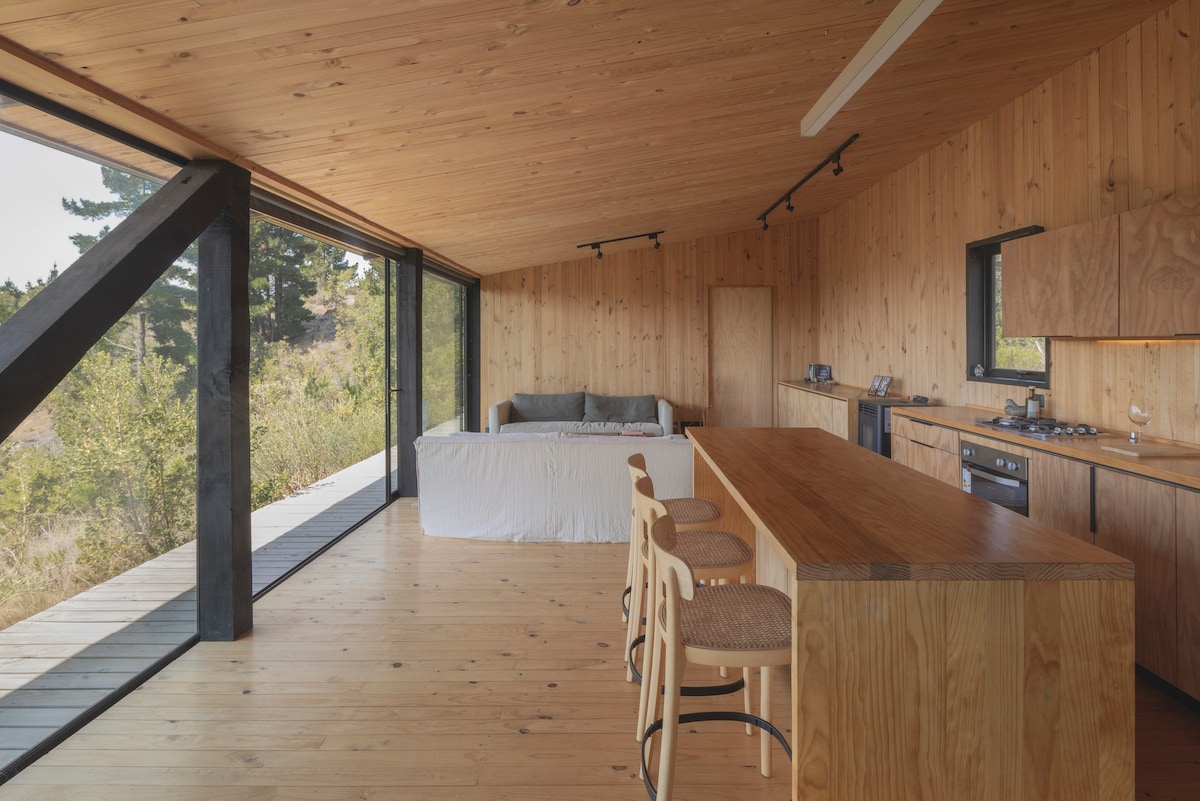 ¿Agobio de Santiago? A 2 horas te espera Casa Ladera, un refugio de diseño exclusivo para tu desconexión total en pareja. Una escapada romántica premium en la calma rural de Matanzas. Aquí, el silencio es protagonista. Relájate en nuestra aclamada tina interior o disfruta la vista al bosque desde los ventanales. A considerar: Diseñada como refugio premium para dos. La 2da habitación es exterior, ideal para parejas, menos práctica para niños.