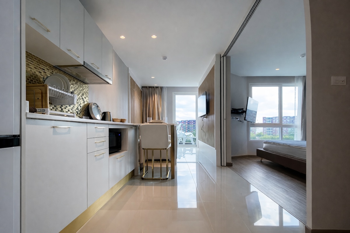 Élvezd a közvetlen medencéhez való hozzáférést ebben a hangulatos, 50 négyzetméteres lakásban a The Title Legendary Bangtao szállodában. Tökéletes pároknak, barátoknak vagy kis családoknak, king méretű hálószobával, kanapéággyal, teljesen felszerelt konyhával és napozóágyakkal felszerelt privát terasszal. Csak egy rövid sétára a Bangtao Beach-től, kávézóktól, üzletektől és éttermektől. Ingyenes Wi-Fi, közös medence, edzőterem és nonstop biztonsági szolgálat.