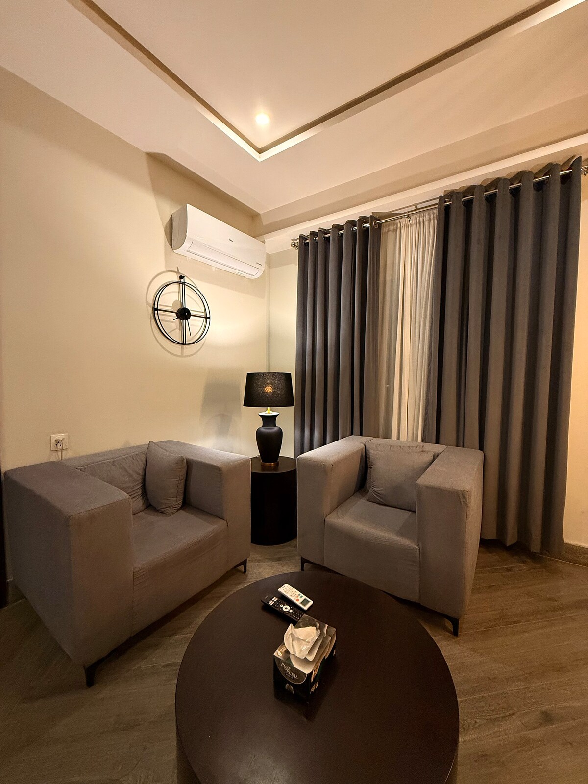 Szállj meg egy luxus, újonnan berendezett stúdiólakásban Bahria Town Phase 7 – River Hills Apartments, Rawalpindi legelőkelőbb részén. Ideális családok, párok és üzleti utazók számára. Élvezd az 50 hüvelykes Smart LED-tévét Netflix-szel, a nagy sebességű Wi-Fi-t, a légkondicionálót, a sötétítőfüggönyöket, a kanapékat és a higiénikus konyhát ingyenes kávéval és teával. Pihenj a 6. emeleti privát erkélyen, gyönyörű kilátással az utcára. Nonstop biztonsági szolgálat és segítség.