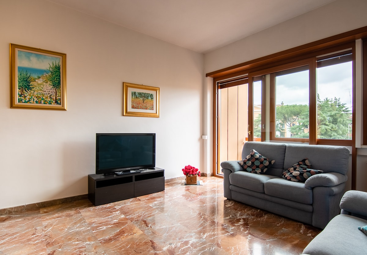 Hangulatos apartman Rómában 2 kétszemélyes hálószobával, nappalival, okos TV-vel, teljesen felszerelt konyhával és erkélyekkel, amelyek panorámakilátást nyújtanak a Castelli Romani dombokra. Egy autentikus, nyüzsgő környéken található, mindössze 5 percre a Furio Camillo metrótól és a 87-es busztól, amely a Colosseumhoz visz. Közel a Caffarella Parkhoz, a helyi piacokhoz és éttermekhez. Személyes üdvözlés és támogatás a teljes tartózkodásod alatt a valódi római élményért.