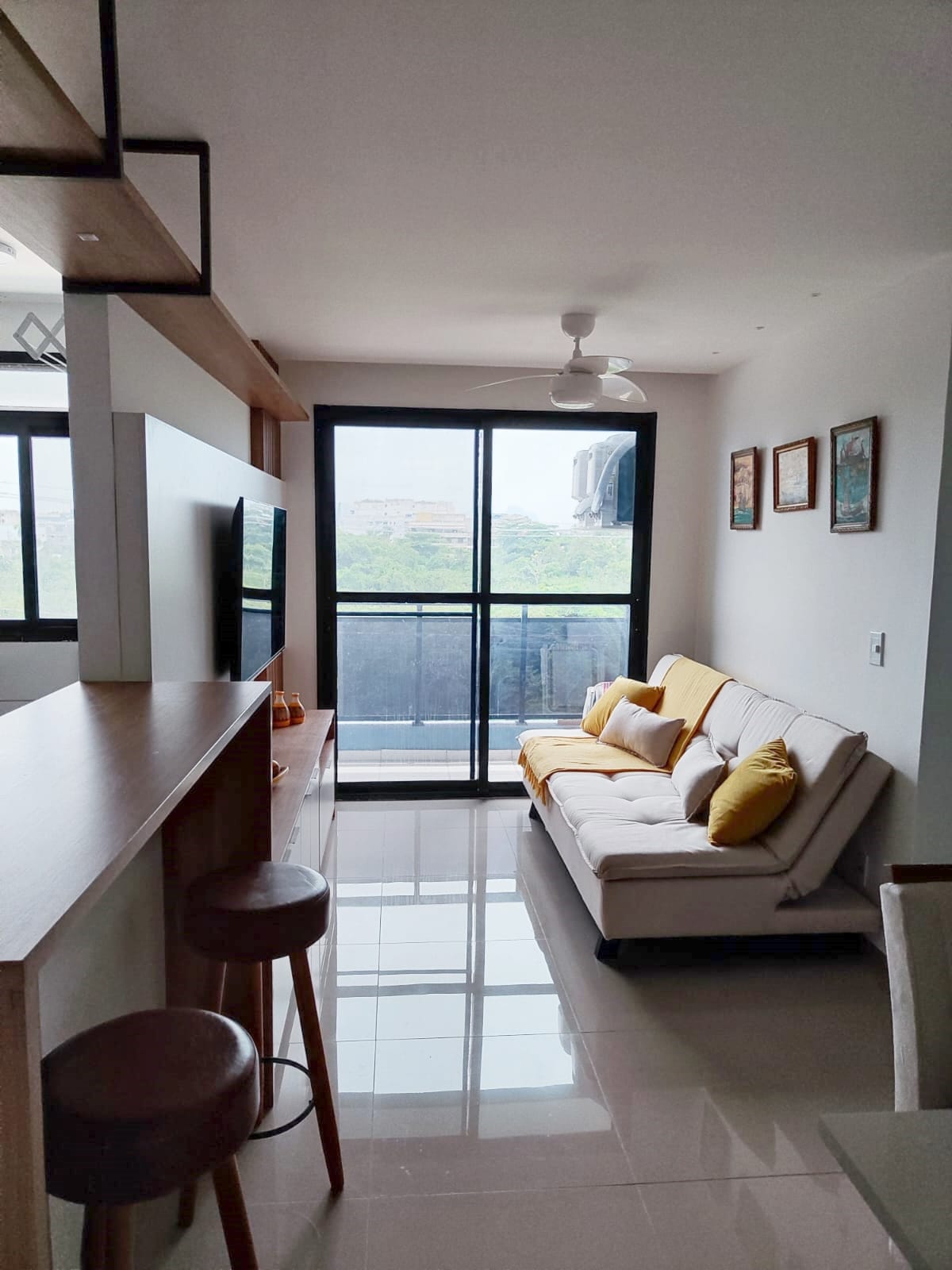 Apartamento boutique no bairro paisagístico da Península, com toda a segurança e estrutura de lazer. Apto. completamente mobiliado com varanda boutique. Cozinha completa, 2 quartos sendo 1 suíte, 2 banheiros, Wi-fi e Tvs e ar condicionado de última geração (nos quartos e na sala de estar). O condomínio é bem equipado com sauna e hidromassagem, piscina aquecida (inverno), academia, brinquedoteca, playground, redário, empréstimo gratuito de bicicletas e possibilidade de limpeza gratuita do apto