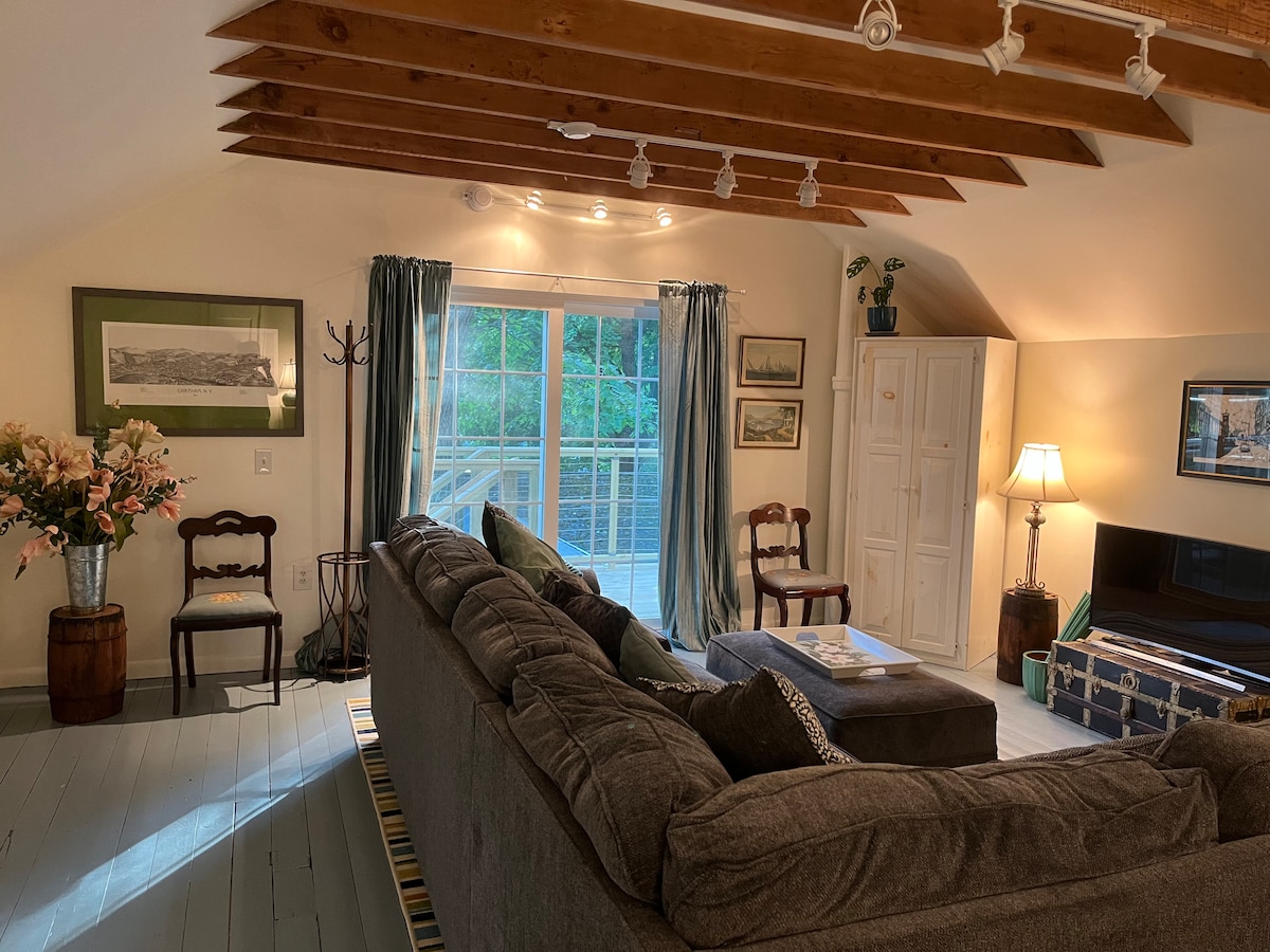 Kinderhaus Loft is on the 3rd floor accessed via an exterior stair case with a deck where you can enjoy views of the gardens & stars. There are lounge chairs and a grill for you to enjoy. The loft is in the center of the Village. You can walk to restaurants, shops, & the Crandall Theatre. You are within a mile of PS21 and MacHaydn Theater. You can also explore Hudson 12 miles away, Kinderhook 6 miles away & the Berkshires are 20-30 miles away. Close to hiking, skiing, theater & the arts.