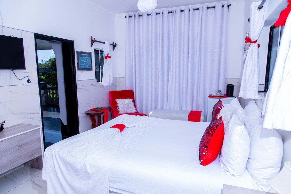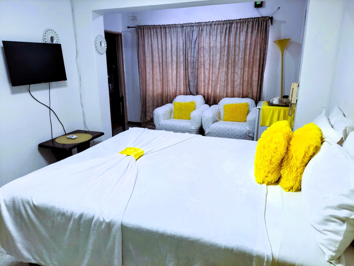 Gyönyörűen berendezett, két hálószobás lakások saját fürdőszobával, tágas társalgóval, ahol barátokkal és családdal pihenhetsz, jól felszerelt önkiszolgáló konyha , panzió és vacsora is rendelkezésre áll. Korlátlan Wi-Fi és Dstv LCD HD TV-vel. Ingyenes és biztonságos parkolóhely. Ideális otthon távol az otthontól, tökéletes vállalati, szabadidős és családi utazók számára, lakosztályok, valamint rövid távú foglalások