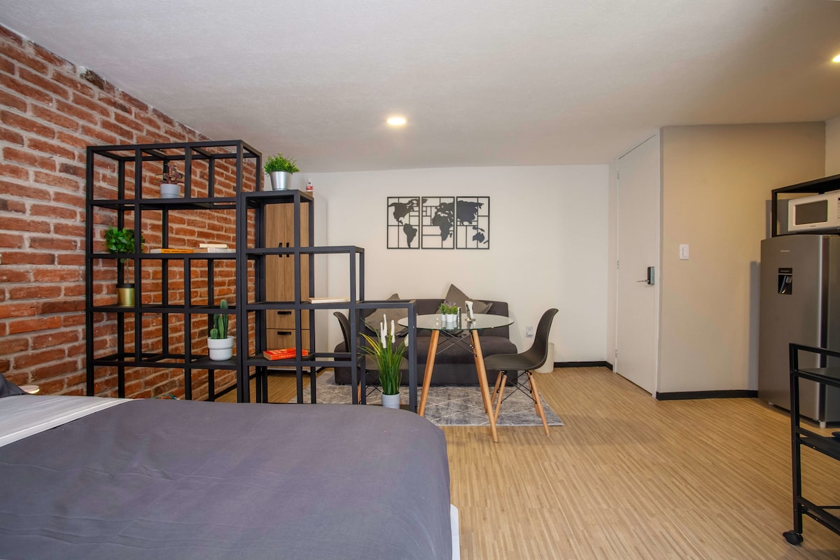 Üdvözlünk ebben a szeretettel előkészített helyen, ahol szívélyes élményben lehet részed Mexikóvárosban. Ez a stúdió, bár kicsi, rendkívül otthonos, tökéletes arra, hogy emlékezetes pillanatokat ossz meg a partnereddel vagy a barátaiddal, ötvözve a kényelmet és a verhetetlen elhelyezkedést. A stúdiót úgy alakítottuk ki, hogy otthon érezd magad, miközben felfedezel mindent, amit Mexikóváros kínál. Élj át egy felejthetetlen élményt egy neked tervezett helyen.