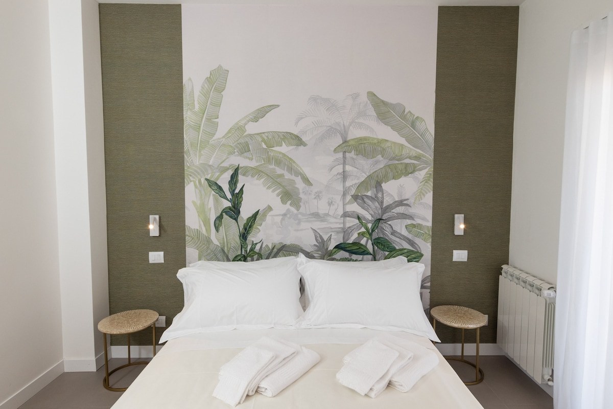 Kétszemélyes szoba egyszemélyes ággyal, amely kérésre kétszemélyes ággyá alakítható, king méretű ágyakkal, légkondicionálóval, parkettával, minibárral, 50"-es Smart TV-vel és exkluzív fürdőszobával a szobában, egy kifinomult panzióban, amely a legapróbb részletekre is odafigyel, és 3 hálószobából áll, amelyek mindegyike saját fürdőszobával rendelkezik. Közös helyiségek: nappali és esetleg konyha. A szobák garantálják a kényelmes tartózkodást. Üzletekkel teli hely, néhány lépésre a Duomótól, a Zaera piactól, a bíróságtól és az egyetemtől.