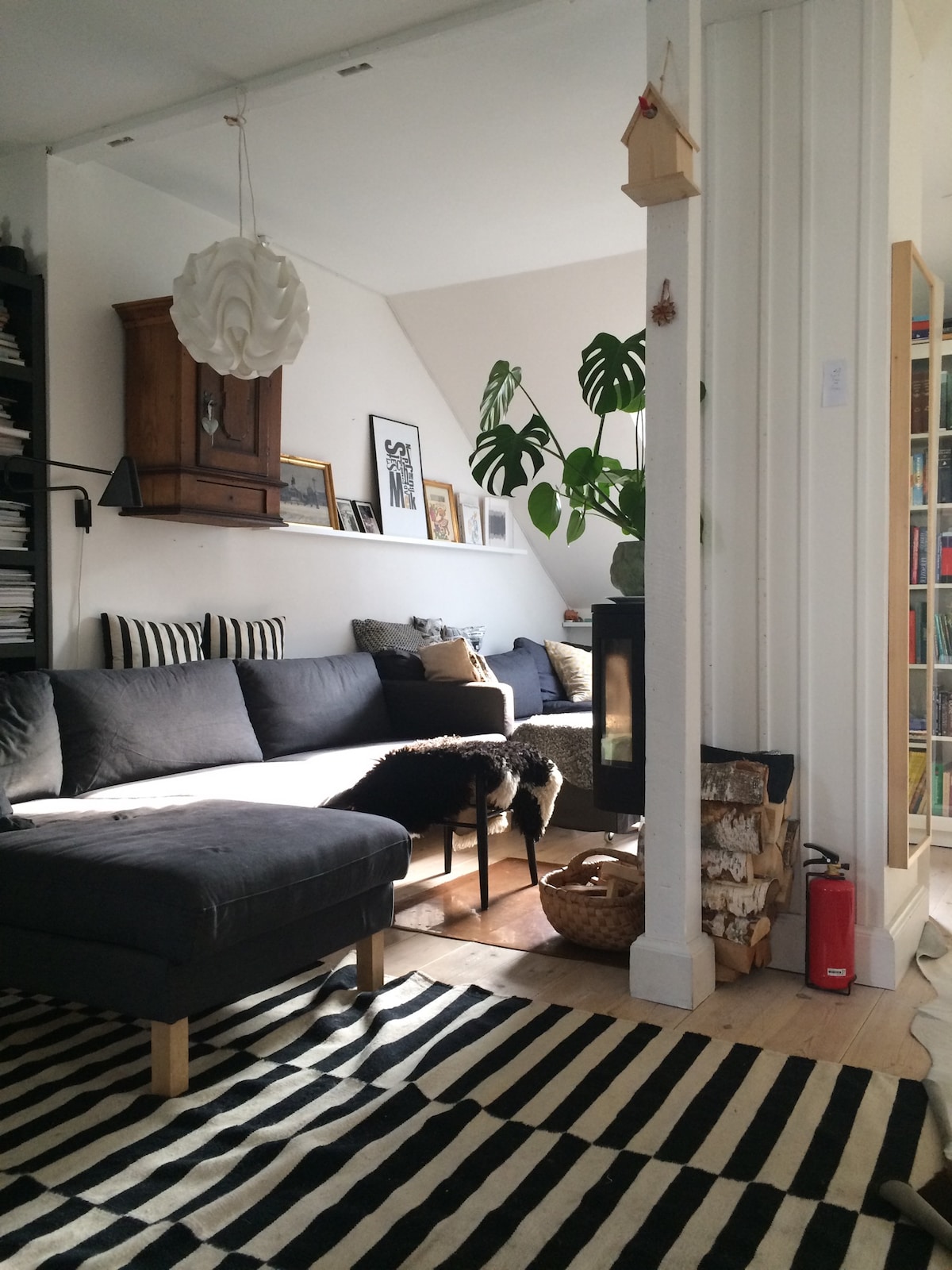 Our light and modern apartment is divided into two floors and has a small loft and two balconies - one on each floor. It accommodates 5 people very well in three bedrooms. The area is cosy and green with lots of lovely cafes, restaurants and shops. The apartment is on 4'th and 5'th floor with no escalator. We do not have a washing machine or dryer in the flat, but there is a large laundry room in the building. We will provide you with a laundry key so that you can use the laundry room freely.