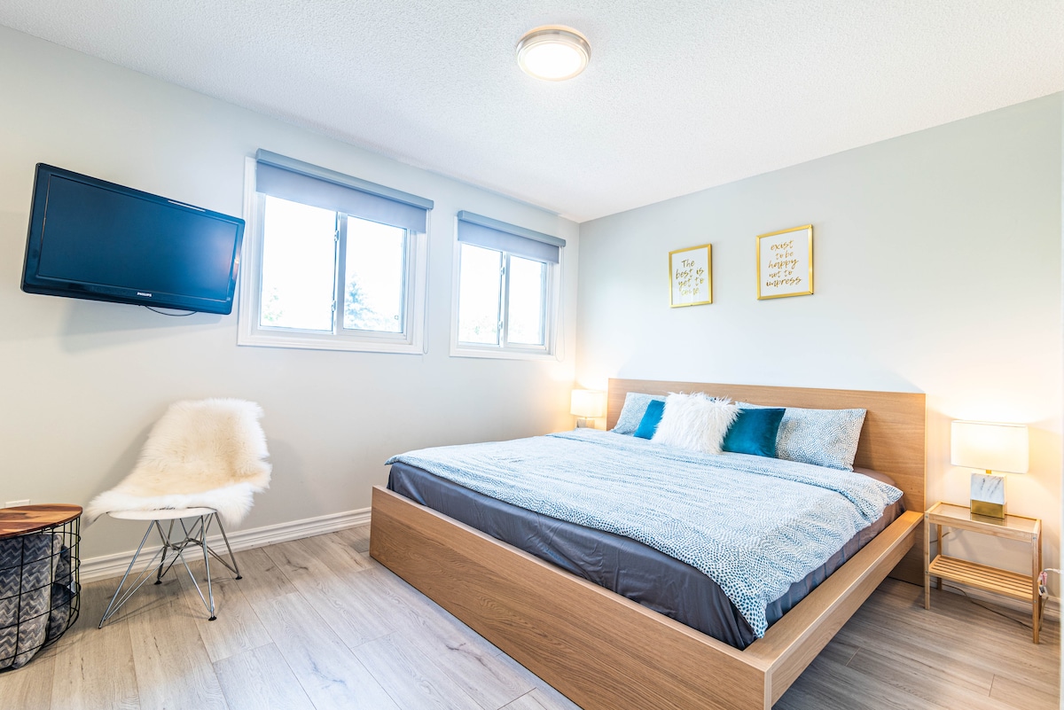 Bring your friends and family to this family-friendly, centrally-located neighbourhood with lots of room for fun and find a home away from home during the travelling. Enjoy your stay in this licensed short-term accommodation for a modern, luxurious, and spacious three-bedroom and two-bathroom detached home with a huge backyard: watching a movie and cozying up by the fire, enjoying the company of friends and family seated around the dining table, or simply in between moving or renovations.