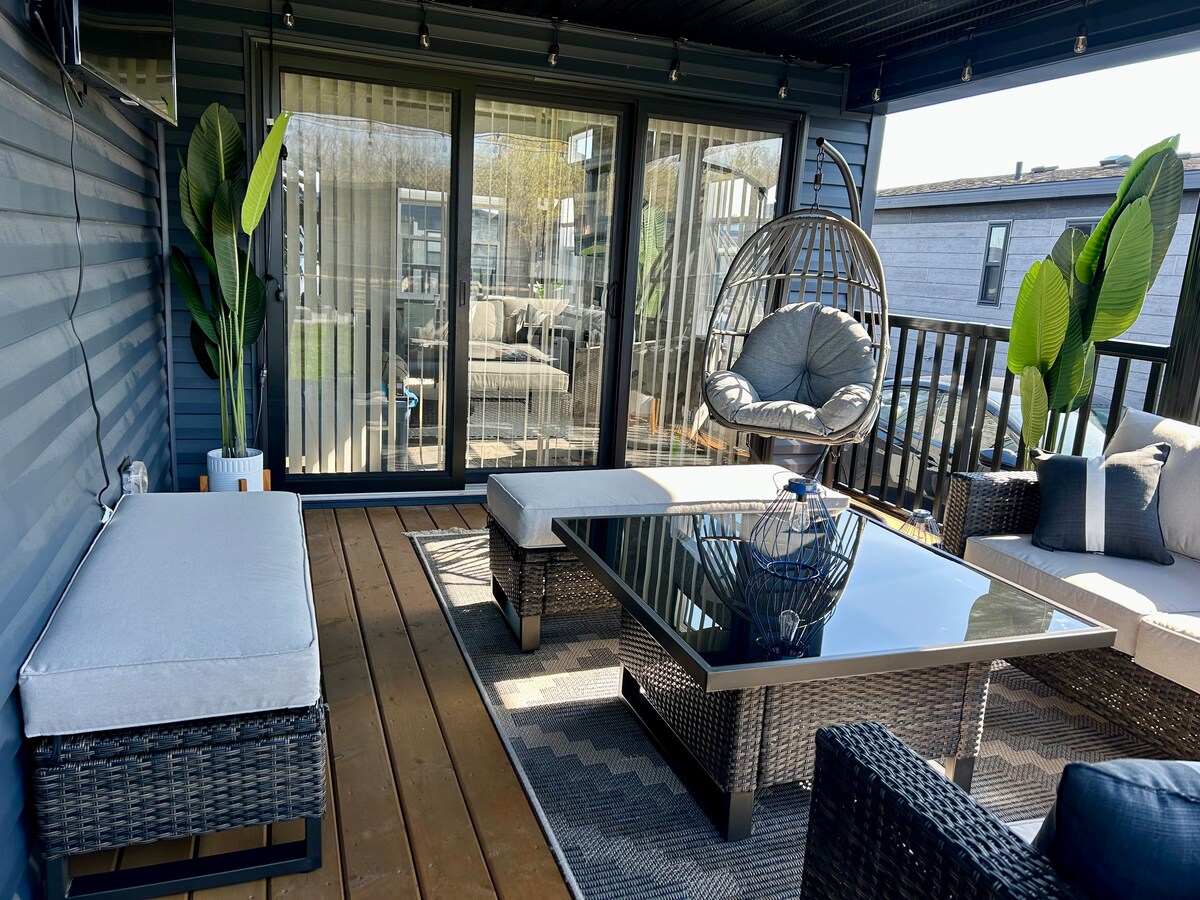 Üdvözöljük a The Henley Luxe Waterfront otthonában, amely a kiváló Niagara régióban található – Port Dalhousie. Ez a 325 négyzetméteres luxusotthon a Martindale Pondra néz, amely világbajnoki evezésre alkalmas pálya. Élvezd a privát evezést és a lenyűgöző kilátást az új teraszunkról és a vízparti fedélzetről, valamint a második emeleti erkélyről. Sétálj el a helyi üzletekbe és éttermekbe ebben a tengerparti városban. Néhány lépésre a Lakeside Park, a strand és a kikötő.