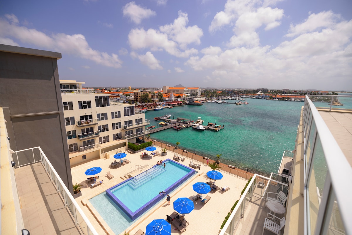 ✓Üdvözlünk gyönyörű, óceánra néző stúdióapartmanunkban Aruba belvárosában, a Harbour House-ban. Ez a stúdió ötödik emeleten van 10 perc autóútra a repülőtértől, és sétatávolságra számos bár, bevásárló, mozik és éttermek. Élvezd a kényelmi szolgáltatásokat, például a végtelenített medencét, a pezsgőfürdőt és az edzőtermet. Az egység mindennel rendelkezik, amire szükséged van ahhoz, hogy a lehető legtöbbet hozhasd ki a nyaralásodból (ingyenes nagysebességű internet, Netflix, privát parkolás, éjjel-nappali biztonság, strandtörülközők és székek, valamint teljesen felszerelt konyha).