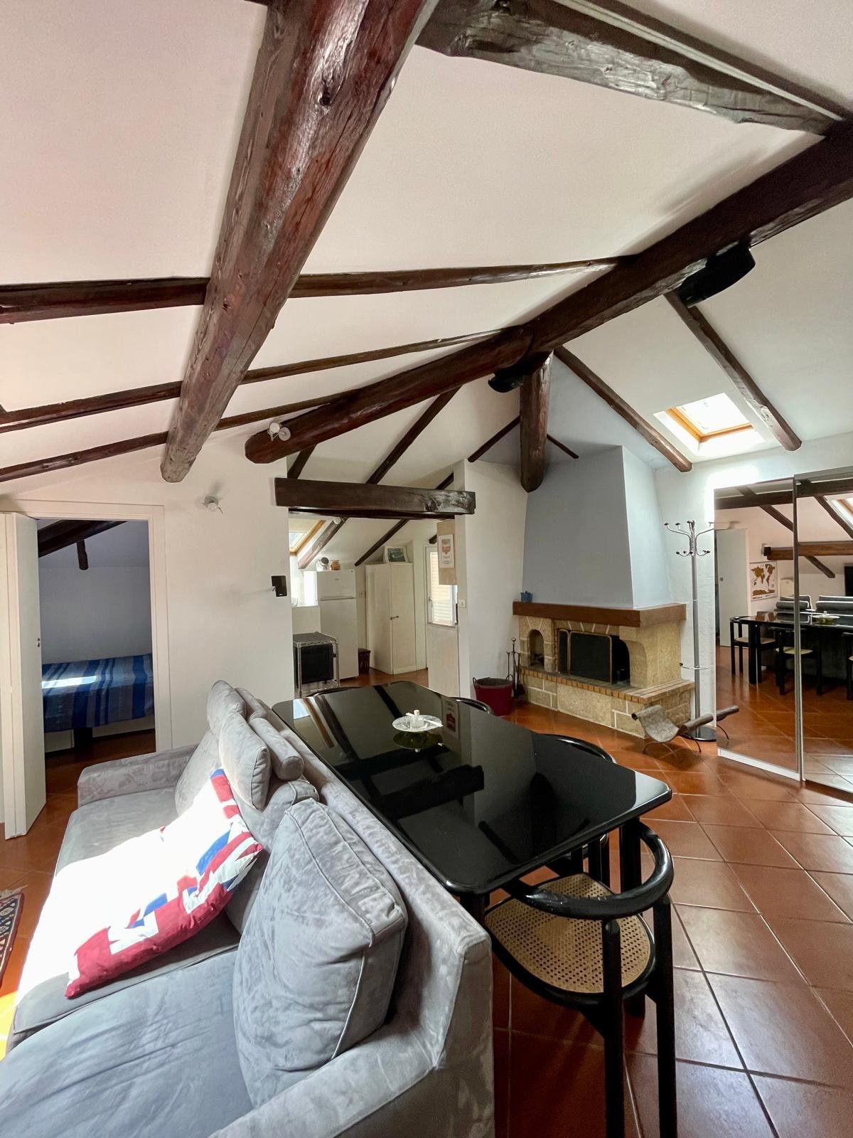 Appartamento mansardato con travi a vista e caminetto in pietra sito all’ultimo piano (con ascensore) di una palazzina poco distante dal centro di Bologna. Terrazzo privato con affaccio sulla città storica e sui colli bolognesi. Salone con tavolo da pranzo, divano letto, televisore e sistema home cinema Bose; camera con letto matrimoniale; zona cucina attrezzata e bagno con doccia. Situato in un’area residenziale facilmente raggiungibile con tutti i mezzi e ben servita. Parcheggio a pagamento.
