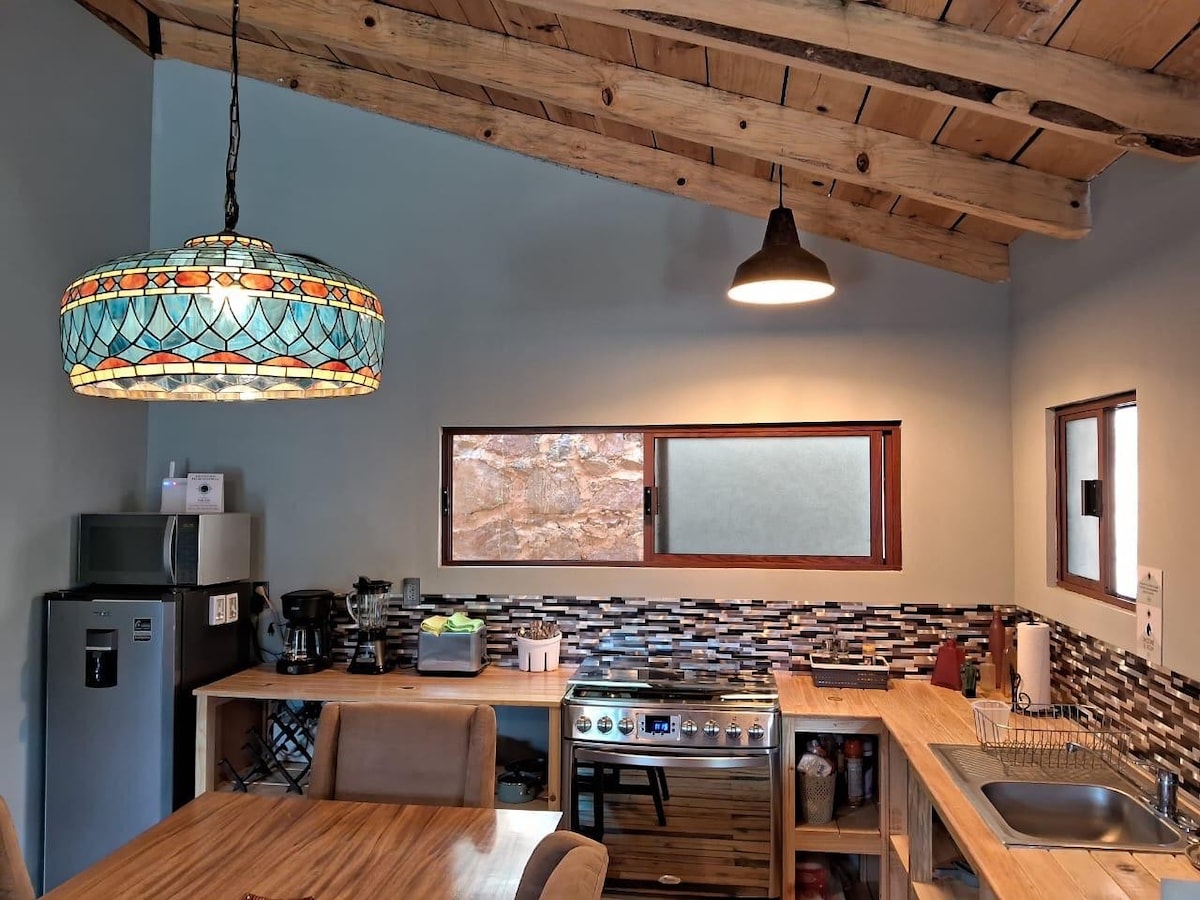 Ébredj a fenséges Peña de Bernal előtt a lakás minden sarkából! A Bernal Pueblo Magico szívében található hely a kényelem és a legjobb kilátás kombinációja. Van egy terasza, amely ideális a napkeltek vagy a csillagos éjszakák megcsodálására, egy nappalija, egy szobája queen méretű ággyal és egy felszerelt konyhája. Központi elhelyezkedésének köszönhetően gyalog is felfedezheted az üzleteket, éttermeket és az ikonikus Peñát. Tökéletes pároknak vagy kis családoknak, akik páratlan tájjal szeretnének pihenni.