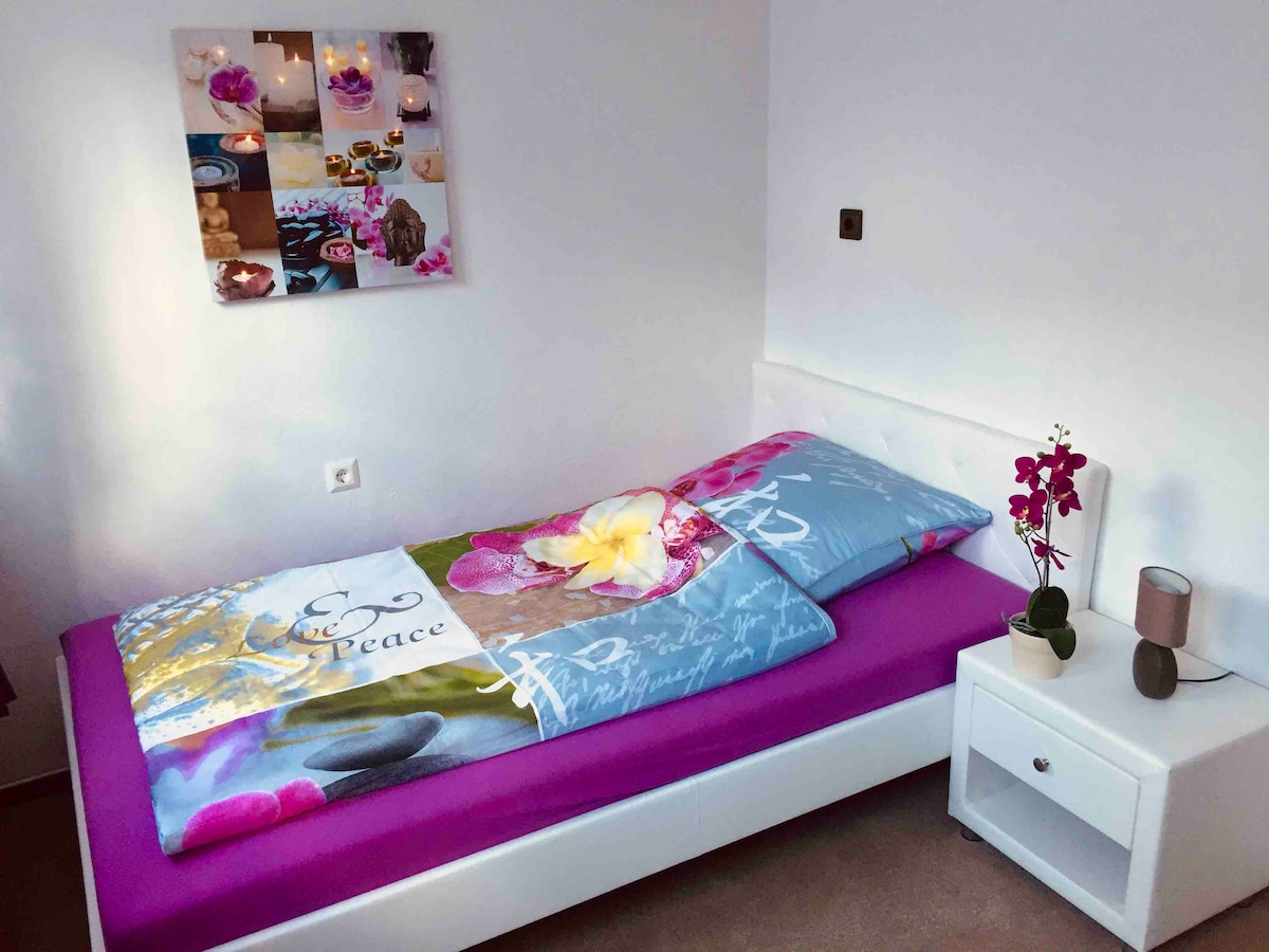 Ez a sokoldalú, új lakás egy 2024-es családi házban található, és csoportoknak vagy vállalatoknak egyaránt használható vásári lakásként. Ez azonban egy olyan hely is, ahol kikapcsolódhatsz egy rövid vidéki utazáshoz pároknak vagy egy nyaralóapartmanhoz az egész családnak. Az A7-es autópálya közel van (egy kis erdő mögött, ezért nem hallható), így a hely vonzó a tranzitban utazók számára is.