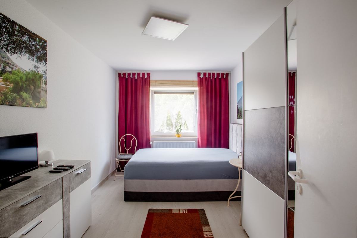 Privát fürdőszoba, konyha és külön bejárat egy nagyon csendes és idilli házban. Van egy saját terasz. A gyönyörű, világos szoba külső redőnyökkel van felszerelve, így az ablakok éjszaka sötétíthetők. A hannoveri kiállítóterek nagyon könnyen megközelíthetők a szövetségi úton keresztül 25 perc alatt (25 km ). Hildesheim városa 25 perc alatt elérhető.