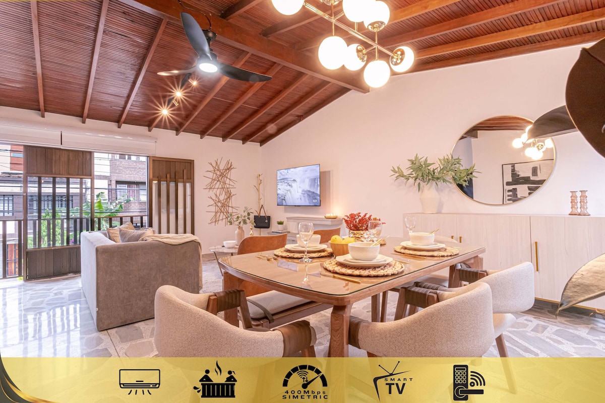 NEMRÉG FELÚJÍTOTT – Nagy sebességű internet, amely kiválóan alkalmas távmunkára - Vadonatúj A/C - Teljesen felújított ipari lakásban -King méretű ágy - Lélegzetelállító kilátás Medellínre (bízz bennem, érdemes itt megszállni) -19. emelet - Verhetetlen elhelyezkedés Pobladóban a Provenza és a Lleras Park közelében - Modern kényelmi szolgáltatások - Tágas nappaliterület - Smart TV x 2 - Teljesen felszerelt konyha – Mosó- és szárítógép torony -Pool -Gym -Coworking space – Étterem az épületben - Privát parkolás - Önálló bejutás -24/7 Biztonság