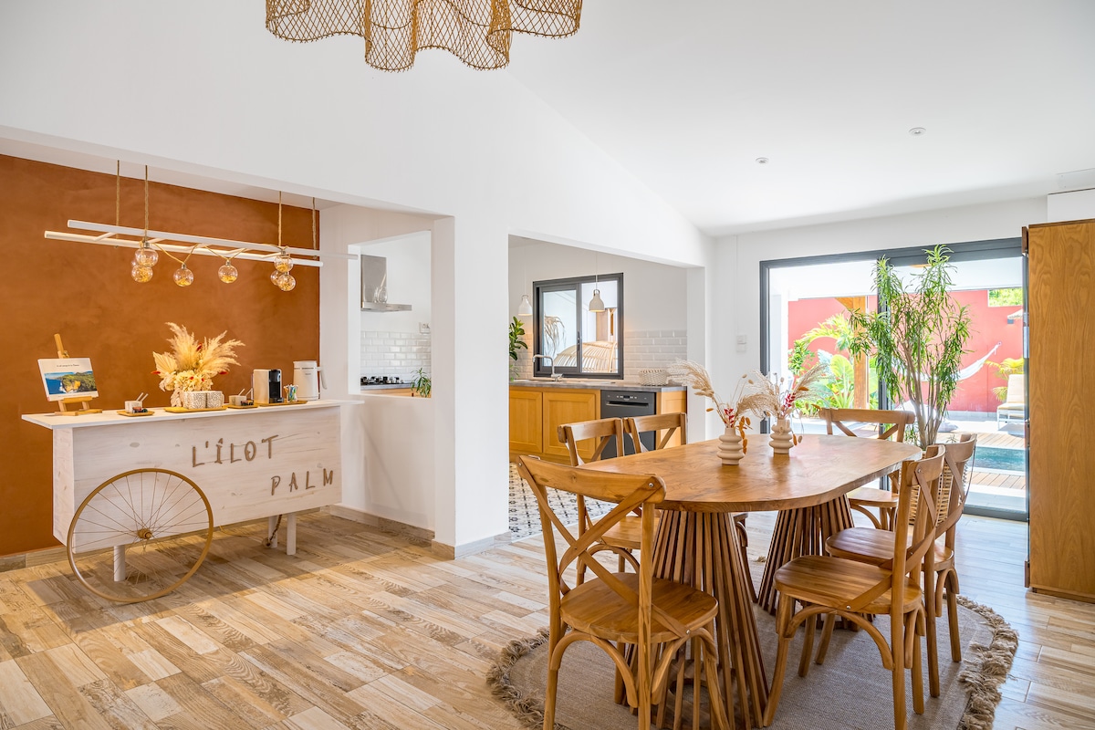 Luxusvilla egy pihentető tartózkodáshoz, amelyet a hullámok elaltatnak, ezekkel a csodálatos naplementékkel és télen bálnák áthaladásával. Lábak a vízben, közvetlen hozzáféréssel a strandhoz, egy nagy terasszal, amelyet fűtetlen végtelenített medence és erdős trópusi kert nyújt. Béke és nyugalom. Tágas villa minden kényelemmel a sikeres tartózkodáshoz Réunionban. Érkezéskor idegenforgalmi adót kell fizetned, ha az Rbnb webhelye nem szedi be.