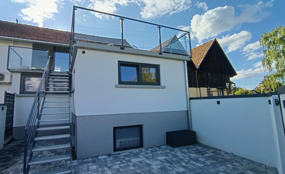 Logement neuf de 45m2, confortable et fonctionnel, accessible par un code d'entrée. Le stationnement dans la cour privative est gratuit. Situé à mi-chemin entre Strasbourg et Colmar (30km), vous serez à 11km d'Europa-Park. Pour vous y rendre, vous prendrez le bac de Rhinau (Ferry à 6min) qui sera votre 1ère attraction pour la traversée du Rhin et rejoindre l'Allemagne. * 10% de réduction sur boulangerie/restaurant partenaires * Le logement est climatisé * Literie et serviettes inclues