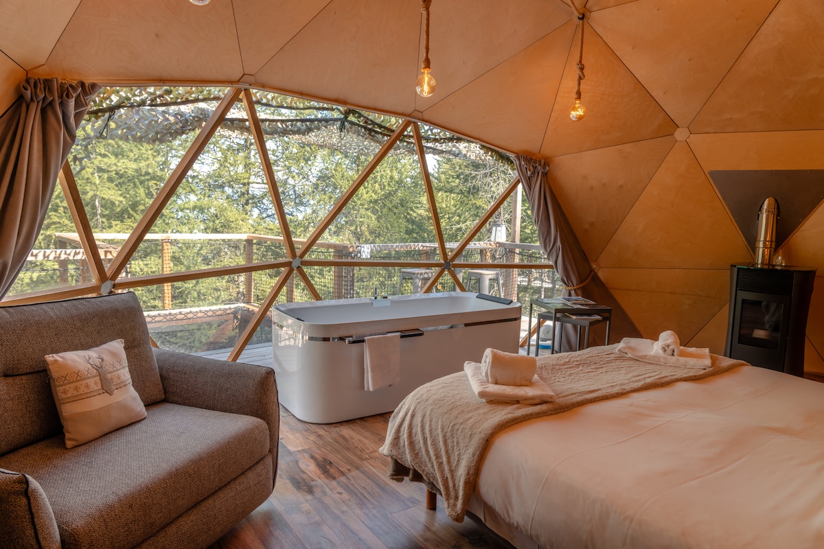 Hangulatos kupolák pezsgőfürdővel, csendes, 360° -os kilátással
