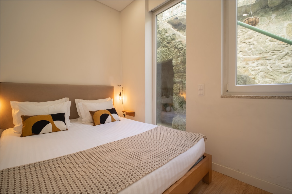 Imagine returning to your refuge apartment &balcony with magnificent panoramic views of the 12th-century Cathedral, its old houses and Douro River, enjoying a Porto Wine glass after exploring the city. In the morning, feel the privilege to awake with an amazing sunrise during your coffee breakfast. Retreat to the serenity of your cozy bedroom, with a high-quality queen-sized bed and premium linens. Discover the historic Estremoz Marbles decorating your modern fully-equipped kitchen & bathroom.