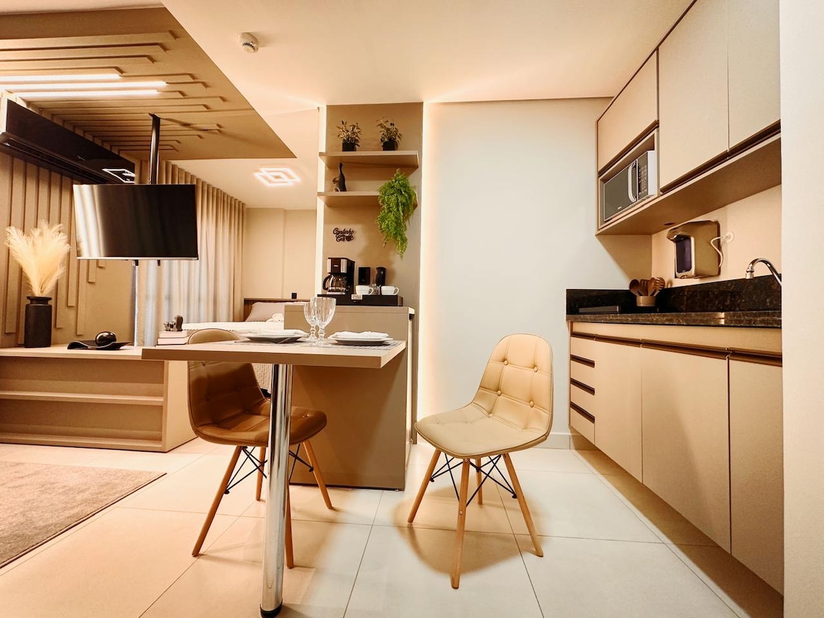 Pihenj ezen az egyedi és csendes helyen. Stúdió Wi-Fi-vel, intelligens TV-vel, légkondicionálóval, Alexával, konyhai eszközökkel, kávéfőzővel, vízszűrővel, hajszárítóval, vasalóval és minden mással a kényelmed érdekében. Két egyszemélyes ágy vagy 1 franciaágy közül választhatsz. Élvezd az olyan közös területeket, mint az úszómedence, a lift, a parkolás, a 24 órás portaszolgálat, a nappali a tanulmányokhoz vagy találkozókhoz, valamint az ínyenc hely. Kiváló elhelyezkedés, közel a San Francisco Hospitalhoz és az UNAERP College-hoz.