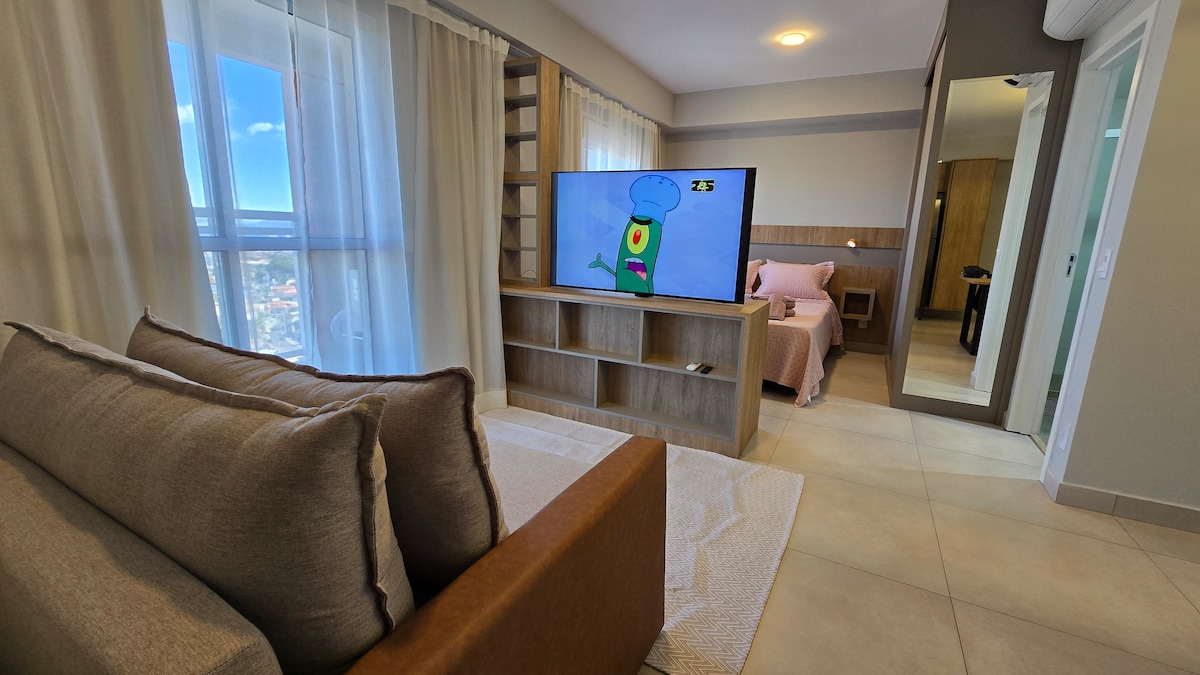 Ez a teljesen berendezett és felszerelt stúdió kényelmet és praktikumot kínál. Kiváltságos helyen található, közel a drogériákhoz, piacokhoz, pékségekhez, bárokhoz, éttermekhez és parkokhoz. A környezet légkondicionálóval, okos tévével, gyors Wi-Fi-vel, teljesen felszerelt konyhával és a kellemes tartózkodáshoz szükséges alapvető kellékekkel rendelkezik. A társasház 24 órás portaszolgálatot, fedett parkolót, mini piacot, úszómedencét, szaunát, edzőtermet, mosodát és tárgyalót kínál. Legfeljebb 3 személy fér el benne (franciaágy és kanapéágy).