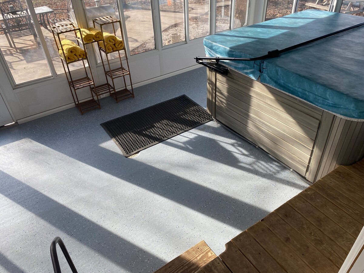 Pihenj egy szeszélyes nyolcszögletű kisházban, amelyet egy buja kert vesz körül, kilátással az úszómedencére és a Wakarusa folyóra. Mindened meglesz, amire szükséged lehet egy romantikus randihoz vagy egy inspiráló helyhez, ahol lelassulhatsz, és újra találkozhatsz a természettel. •1 hálószobás, nyitott lakóterület sok természetes fénnyel és gyönyörű kilátással. • Kávézó mikrohullámú sütővel, elektromos égővel és mini friggel. • Evezős csónak az alsó tónál és 2 diszkoszgolf háló áll rendelkezésre szórakozás céljából. • HÁZIÁLLATOK NEM ENGEDÉLYEZETTEK