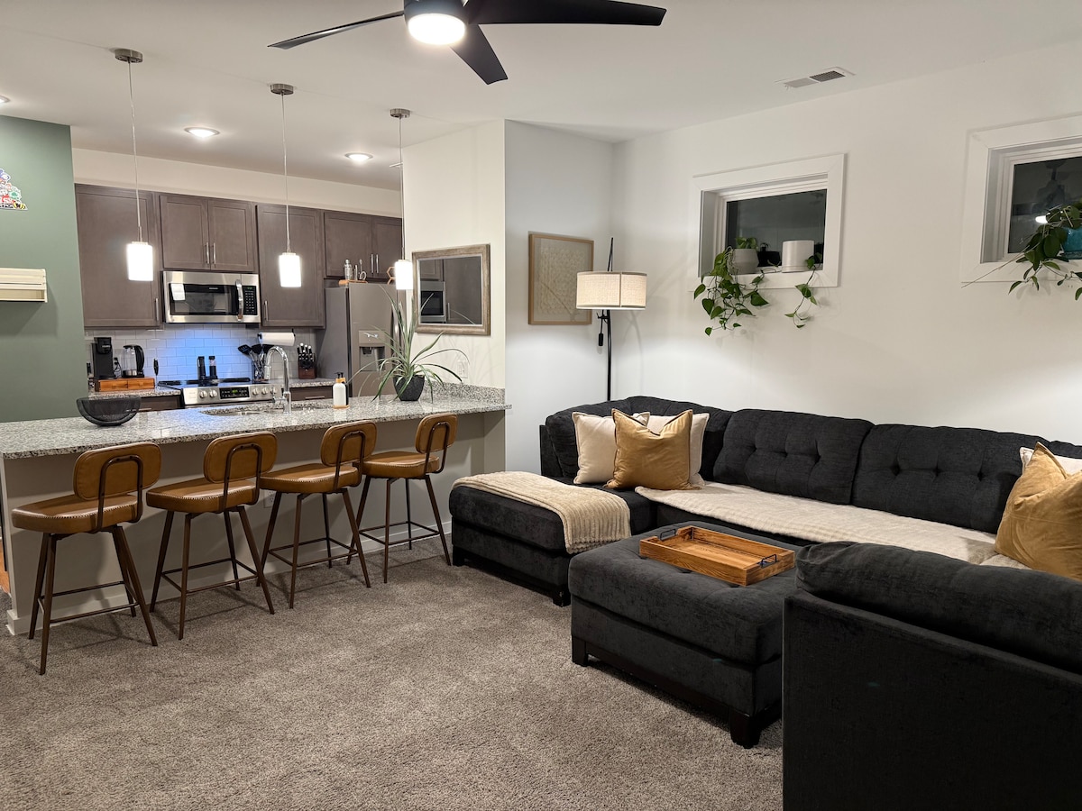 Welcome to your luxurious home base in the heart of Scott’s Addition. Private bathrooms in each bedroom, a full kitchen, in-unit laundry, fast Wi-Fi, and Smart TVs in every room, plus access to a pool, gym, and secure parking. Walk to breweries, restaurants, and shops—great for families, groups, or business travelers. This is our personal apartment when not hosting, so you may notice neatly stored clothing, pantry items, or basic toiletries. The space is clean, organized, and fully guest-ready.