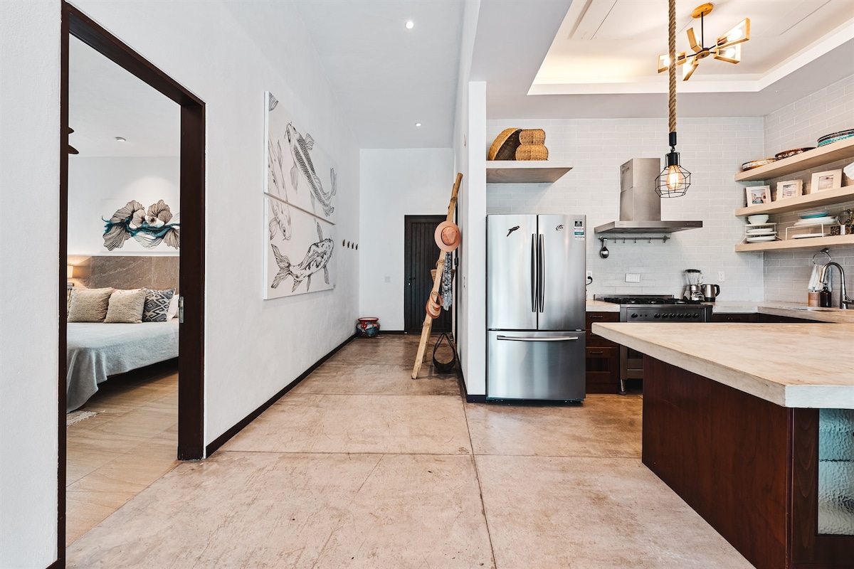 A Condo Rosina egy frissen felújított, 1 hálószobás társasházi lakás a Nuevo Vallartában található, 2025 júniusában átfestve. Élvezd a hegyekre nyíló kilátást és a hangulatos erkélyt grillezővel és napkeltére nyíló kilátással. 2 fő részére king méretű ággyal, 1 fürdőszoba zuhanyzóval, teljesen felszerelt konyha, kávézó, nagy sebességű internet, nagyszerű új légkondicionáló és külön munkaterület. Tágas nappali nagy kanapéval. Sétálj le a partra 8 perc alatt, vagy élvezd a kávézókat, éttermeket és üzleteket a földszinten. Békés és jó elhelyezkedésű.