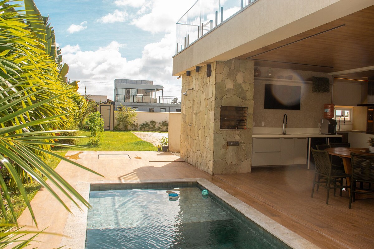 🏠 Pool, beach tennis court, lagoonfront deck, daily sunsets, and spaces designed for slow living. 5 suites with air conditioning and gas-heated showers (4 suites with queen beds and private outdoor hot tubs, 1 suite with bunk bed + 4 single beds) High-speed Starlink internet Living room with air conditioning and 55” TV 5-minute walk to the beach Additional Services Breakfast + daily housekeeping: R$ 30 per person Private cook for lunch: upon request @viladocardeiro