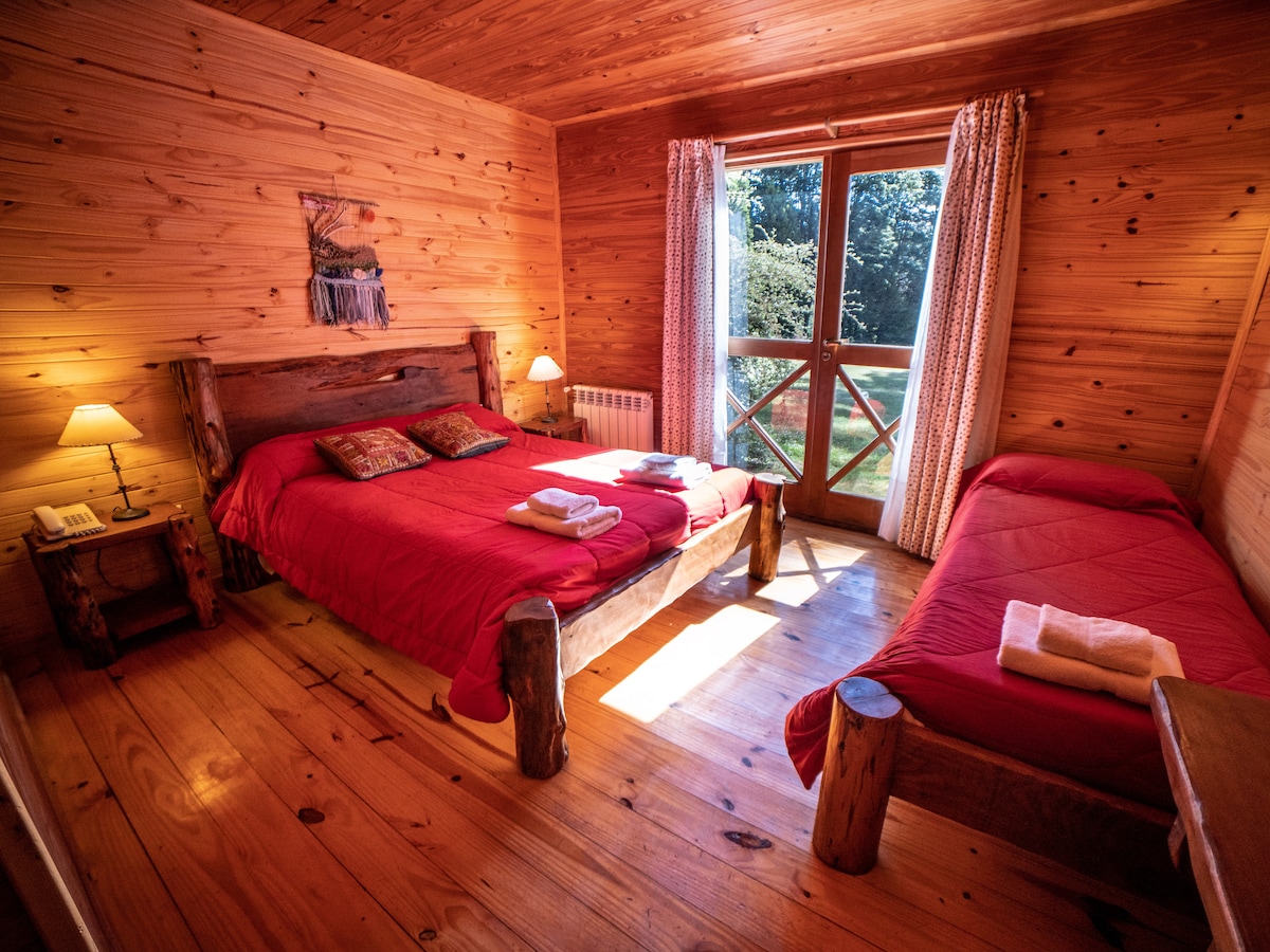 Hermosa habitación triple con baño privado. Cuenta con una cama matrimonial y una cama individual en la misma planta junto al baño. Desayuno, estacionamiento y wifi gratis. Contamos con piscina en época estival y calefaccion por radiadores en todas las habitaciones! No querrás marcharte de este alojamiento único que desprende encanto.