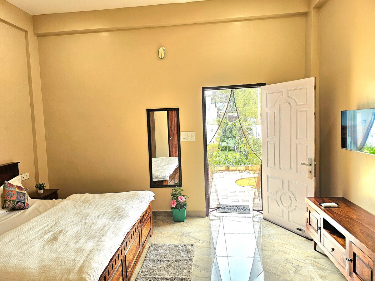 Blissful Townhouse - Your own private villa in Rishikesh. 🏡 Total privacy - no shared spaces, no strangers, just your private villa 2 spacious studio rooms with AC, king beds, WiFi, workstation, kitchenette & power backup Step outside into your lush private garden - yoga, alfresco patio dining, or simply unwinding under the sky. 🌿🍽️ Pet friendly 🐾 · Remote work ready 💻 · Caretaker on-site 🙋♂️ · Secure parking 🚗 · Blinkit, Swiggy & Zomato deliver 🍔 Your villa. Your rules. Your pace.