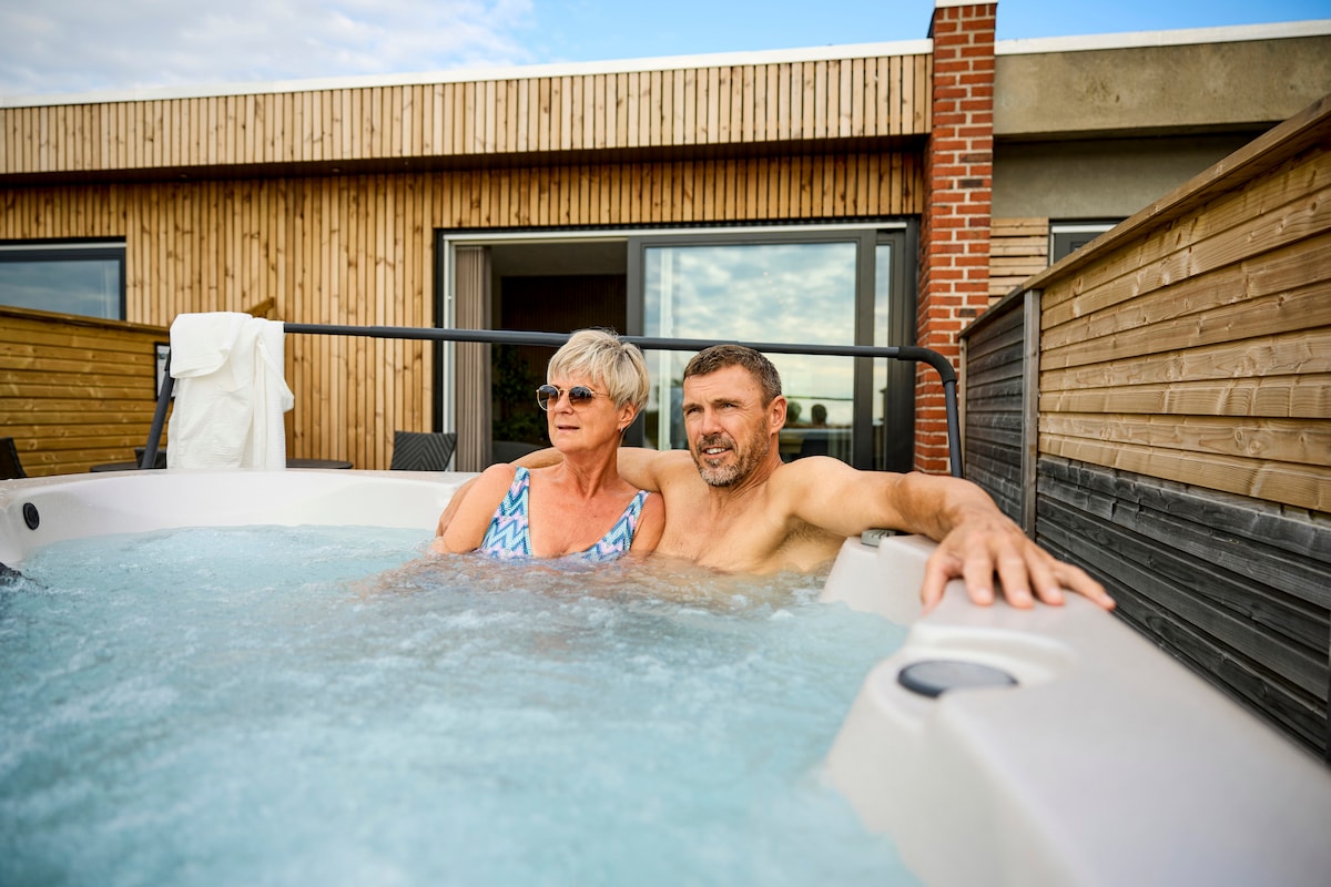 Ferielejlighed med egen opvarmet spa og havudsigt.