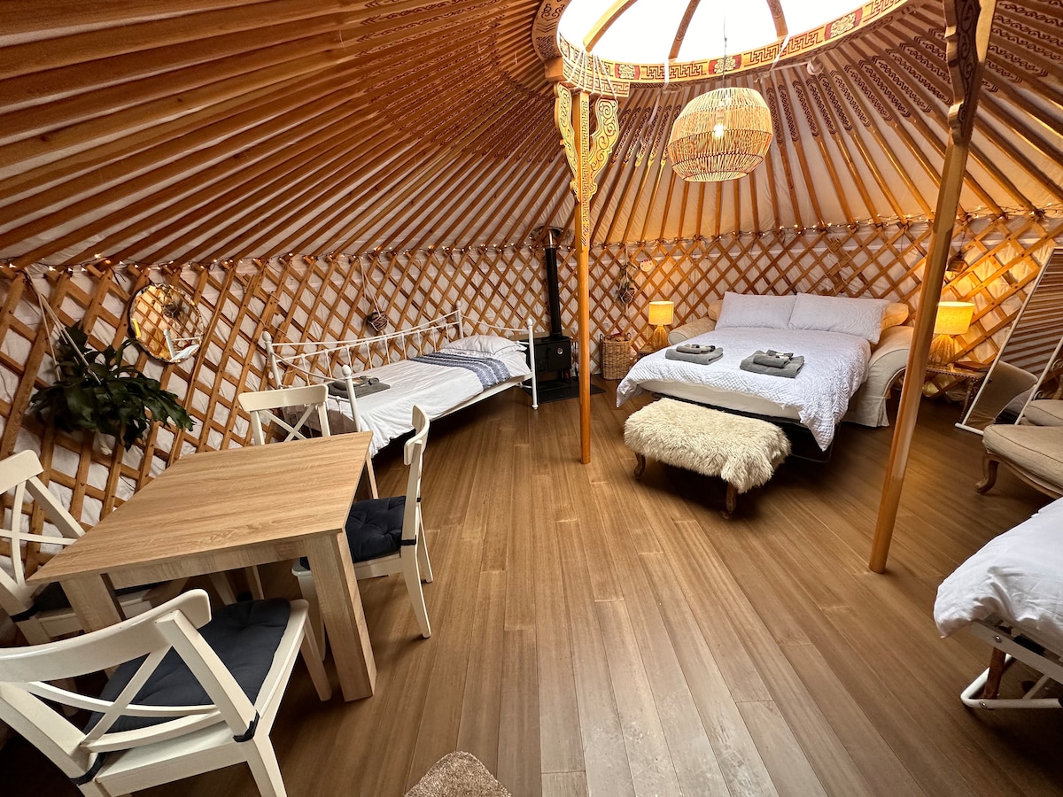 Az általam és Mongólia nagyi által kézzel épített jurta a hagyományos mongol dizájn és a bohém elegancia keveréke. Ahogy belépsz a jurtába, azonnal észreveszed a nyugalom és a földelés érzését, amely ideális visszavonulás a mozgalmas életstílusból. A vidékkel körülvett jurta számos mongol műtárgynak ad otthont, amelyeket Mongólia nagyi ajándékozott nekem. Faszenes grillezővel és tűzhellyel rendelkezik. Kint van egy nagy étkező, egy kültéri konyha és egy kültéri fürdőszoba. Gyerekbarát hely. Ahogy a BBC2 My Unique B&B-n is látható.