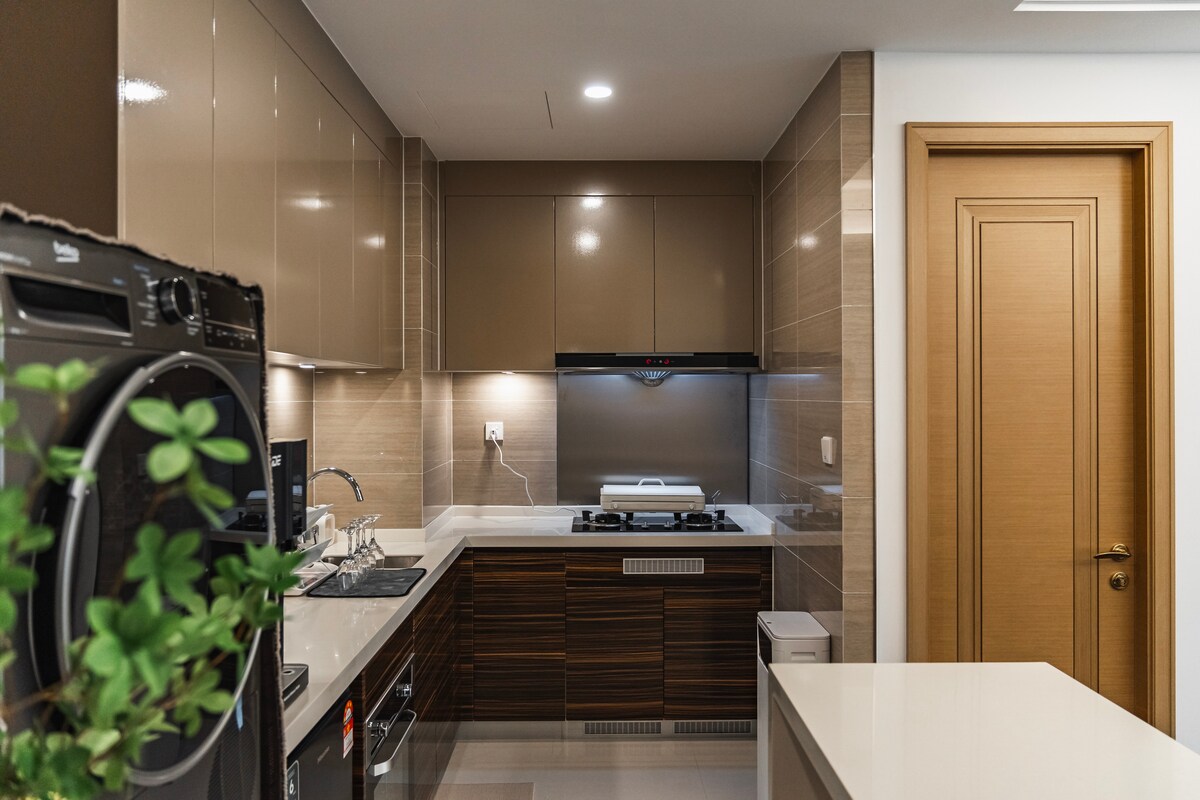 Üdvözöl az OK HomeStay! 🏡 32. szint – Tágas, 2 hálószobás és 2 fürdőszobás, modern, berendezett stúdiólakás a KSL D'Esplanade Residences-ben. Legfeljebb 8 vendéget tud fogadni – 4 queen méretű ágy. Önálló bejutás éjjel-nappali biztonsági őrrel. Vízadagoló mellékelve. A népszerű KSL bevásárlóközponttal szomszédos társasház (a bevásárlóközponthoz kapcsolódó előcsarnok). 🛗 Tippek a liftekkel kapcsolatban - csúcsidőben előfordulhat, hogy van némi várakozási idő. A zökkenőmentesebb élmény érdekében a lifttel először fel és le is mehetsz.