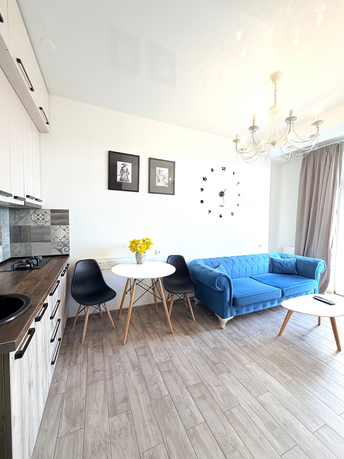 Üdvözöljük a „Terrace Gallery”-ben, ahol minden részlet a kényelmének és örömének van szentelve. Ez az elegáns otthon Tbiliszi szívében található, és magánéletet, kényelmet és egyedi élményt kínál. A vendégeket az ízlésüknek megfelelően kiválasztott grúz borral, friss szezonális gyümölcsökkel, finom csokoládéval, kávéval, teával és üdítőkkel várják. A lakás dizájner belső térrel, városi kilátással rendelkező panorámaterasszal, prémium bútorokkal és intelligens zárral rendelkezik, amely lehetővé teszi az önálló be- és kijelentkezést.