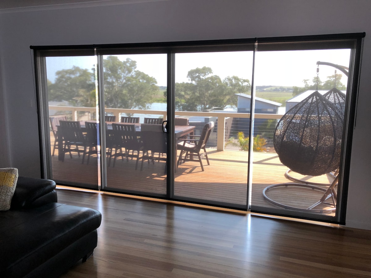 Minden ágy friss ágyneművel és törülközőkkel készül. A kényelmed érdekében paplanokat, párnákat stb. biztosítunk. Teljesen berendezett, modern rövid távú bérbeadás. - 5 hálószoba, mindegyikben king méretű ágy van, vagy kettéválhatsz egyet. - tradie ready - az árak 2 főre vonatkoznak - 50 dollár/fő/éj a további vendégek számára - biliárdasztal - hatalmas terasz - kilátás a folyóra - mosogatógép - kapucnis grill - 5 king méretű ágy vagy - 10 egyszemélyes ágy vagy - egy kombináció - hosszabb távú foglalások és nagy csoportos kedvezmények mindig elérhetők kérésre - bulik vagy rendezvények nem engedélyezettek