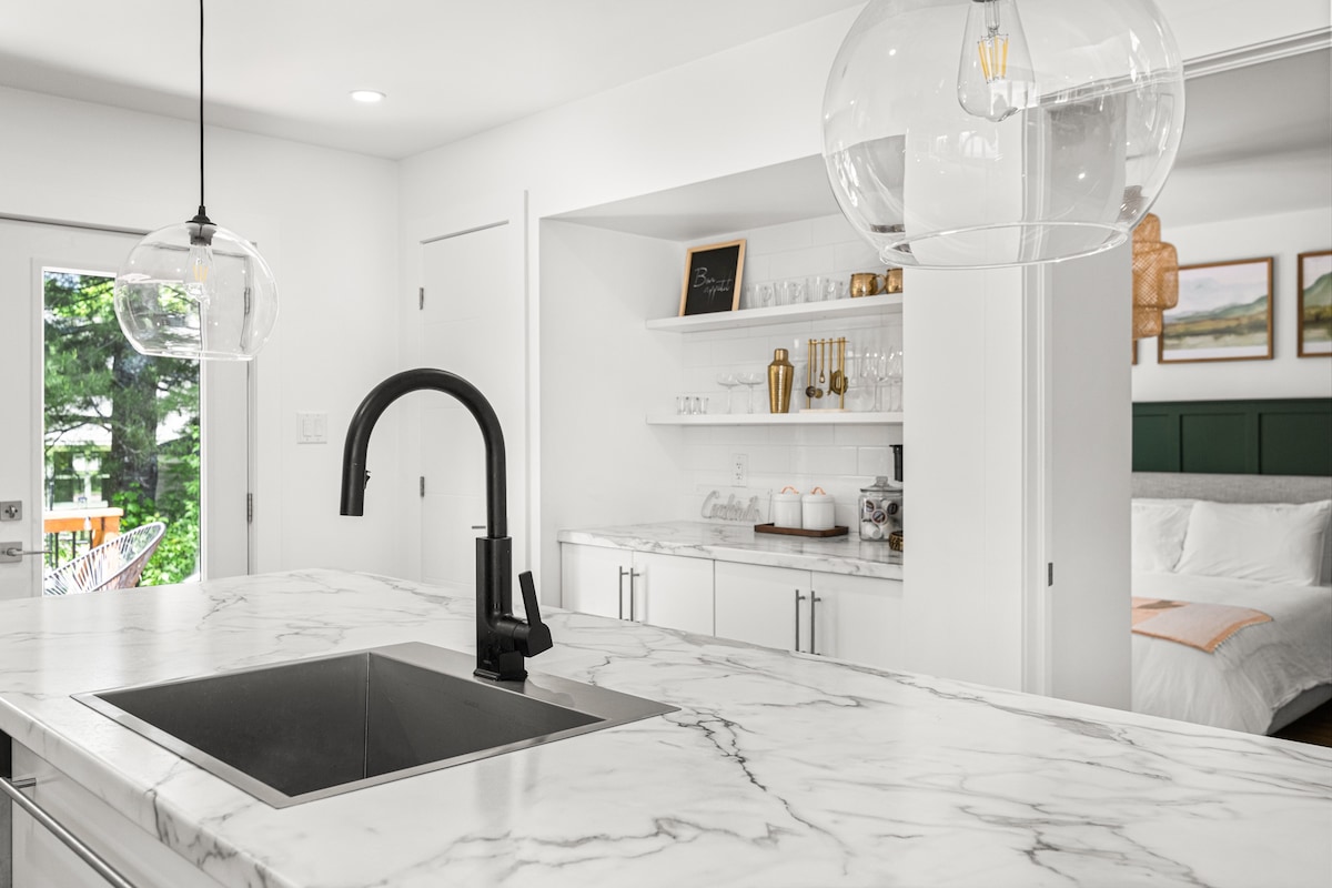Világos, modern, egyszintes kiruccanás a csendes Sunnybrae negyedben, pár percre a belvárostól. Ez a teljesen felszerelt és ízlésesen berendezett bungaló luxusszintű kényelmi szolgáltatásokkal békés menedéket nyújt anélkül, hogy távol lenne. Élvezd a filmet streamingszolgáltatásokkal vagy kábeltévével a hangulatos nappaliban. Vagy tölts el egy pihentető estét a fényfüzérekkel körülvett pezsgőfürdőben, mielőtt s'morest pörkölsz az általad választott fa vagy propán tűzrakóhely helyett. A családok számára tökéletes park 1 perces sétával elérhető.