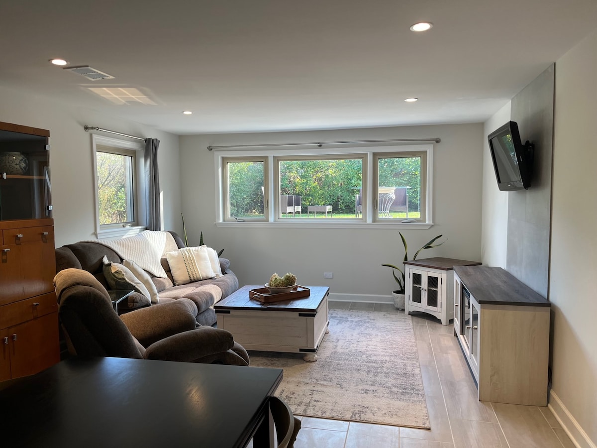 Legyen egyszerű ebben a békés lakásban, sétatávolságra Libertyville fantasztikus belvárosától. Nagyon szépen karbantartott épület lifttel. 7 mérföldre a Great Lakes Naval Base-től. Szuper tiszta egység vadonatúj bútorokkal. HD Smart TV kábellel mind a nappaliban, mind a hálószobában. A kanapé mögött található egy kényelmes kihúzható ágy, amely tökéletes egy személy számára. Gyors Wi-Fi külön íróasztallal. Bőséges ingyenes parkolás közvetlenül az épület előtt. Helyszíni mosoda egy emelettel lejjebb.