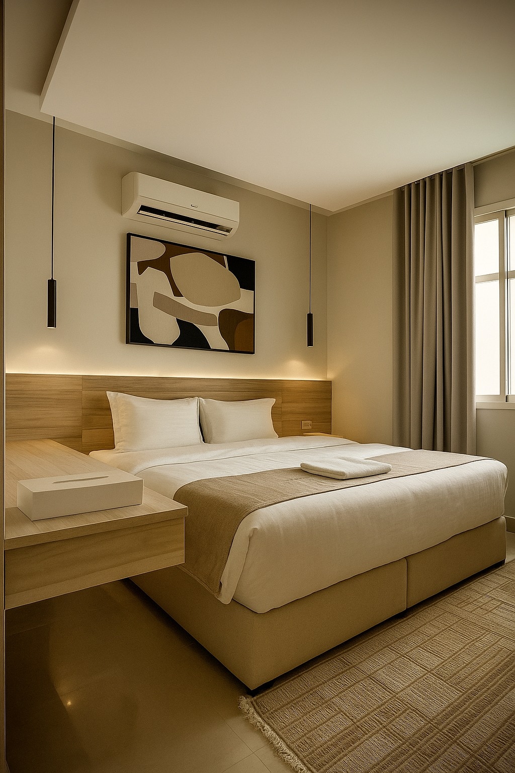 Enjoy a premium stay combining comfort and privacy. Each unit includes a stylish kitchen, private bathroom, and modern design. Located in Riyadh near services and restaurants, with 24-hour reception. استمتع بتجربة فندقية راقية تجمع بين الراحة والخصوصية. كل وحدة مجهزة بمطبخ أنيق، حمام خاص، وتصميم عصري يضمن لك إقامة مريحة. موقعنا بالرياض قريب من الخدمات والمطاعم، مع استقبال 24 ساعة لخدمتك.