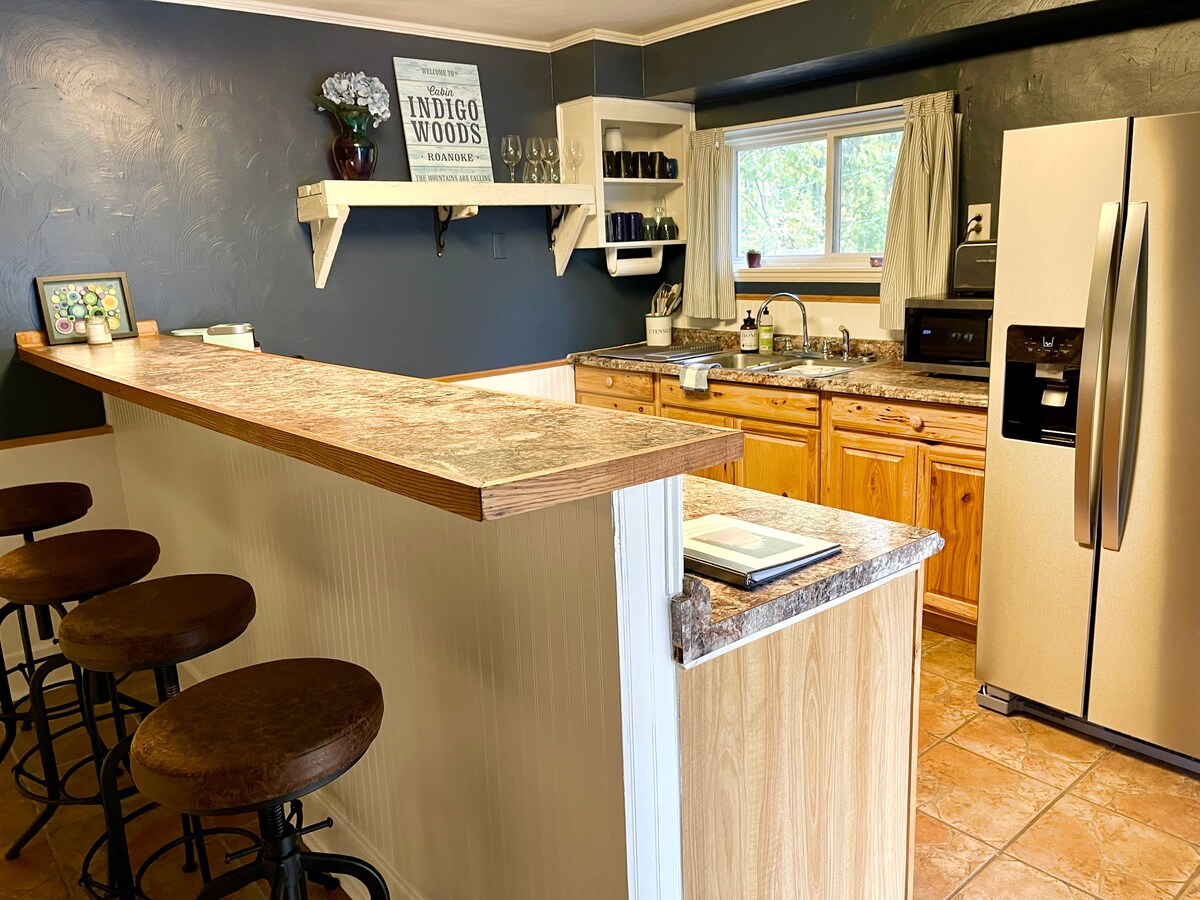 Üdvözlünk az Indigo Woods Cabinben! Egy több mint 560 hektáros természetvédelmi terület mellett található a szálláshelyünk, ahol 8 kilométernyi túraútvonal vár. Az Appalachei ösvény (McAfee Knob), a Smith Mountain Lake, a James River és a Carvin Cove víztározó is a közelben található. Érezd magad közel a természethez, miközben közel vagy a bevásárláshoz és a kellemes éttermekhez Salemben és Roanoke-ban. Egy ágy/fürdőszoba kihúzható kanapéval a nappaliban. Állatbarát! Insta: @indigowoodscabin. 2 AirBnB sétatávolságra csoportos foglalásokhoz.